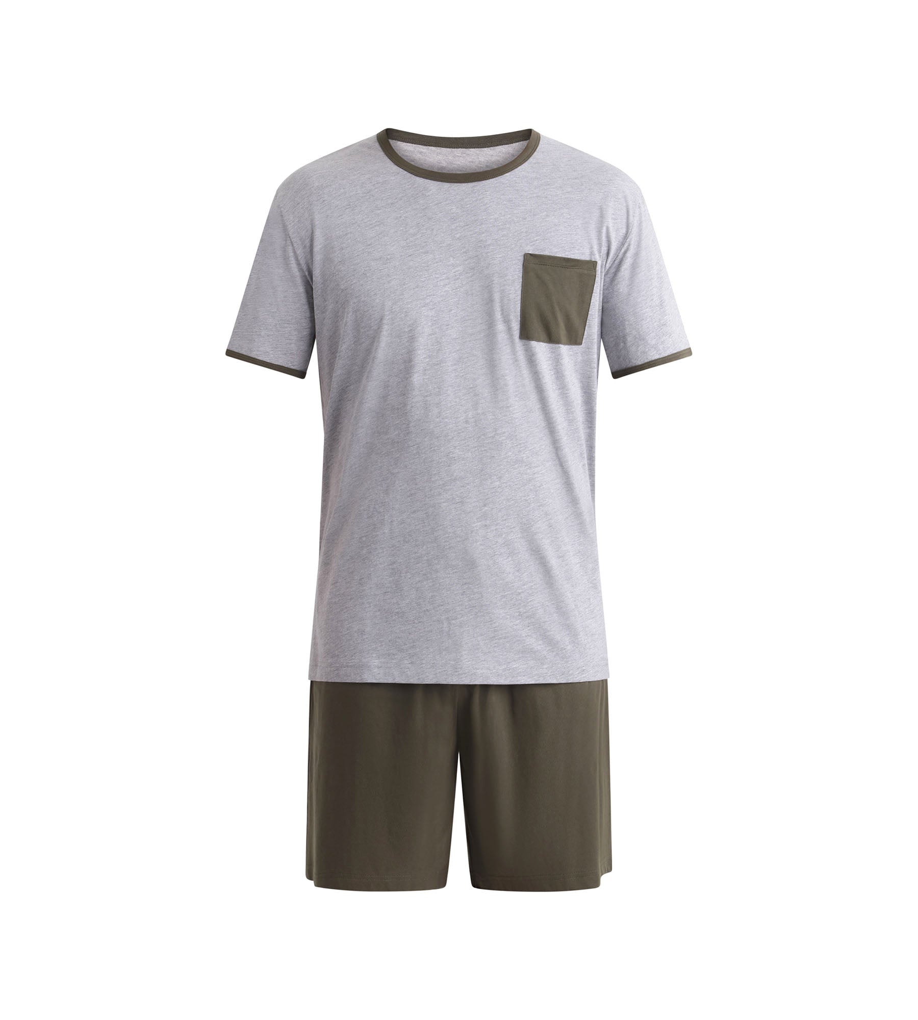 Ensemble pyjama short homme Kaki Gris Dim Jersey