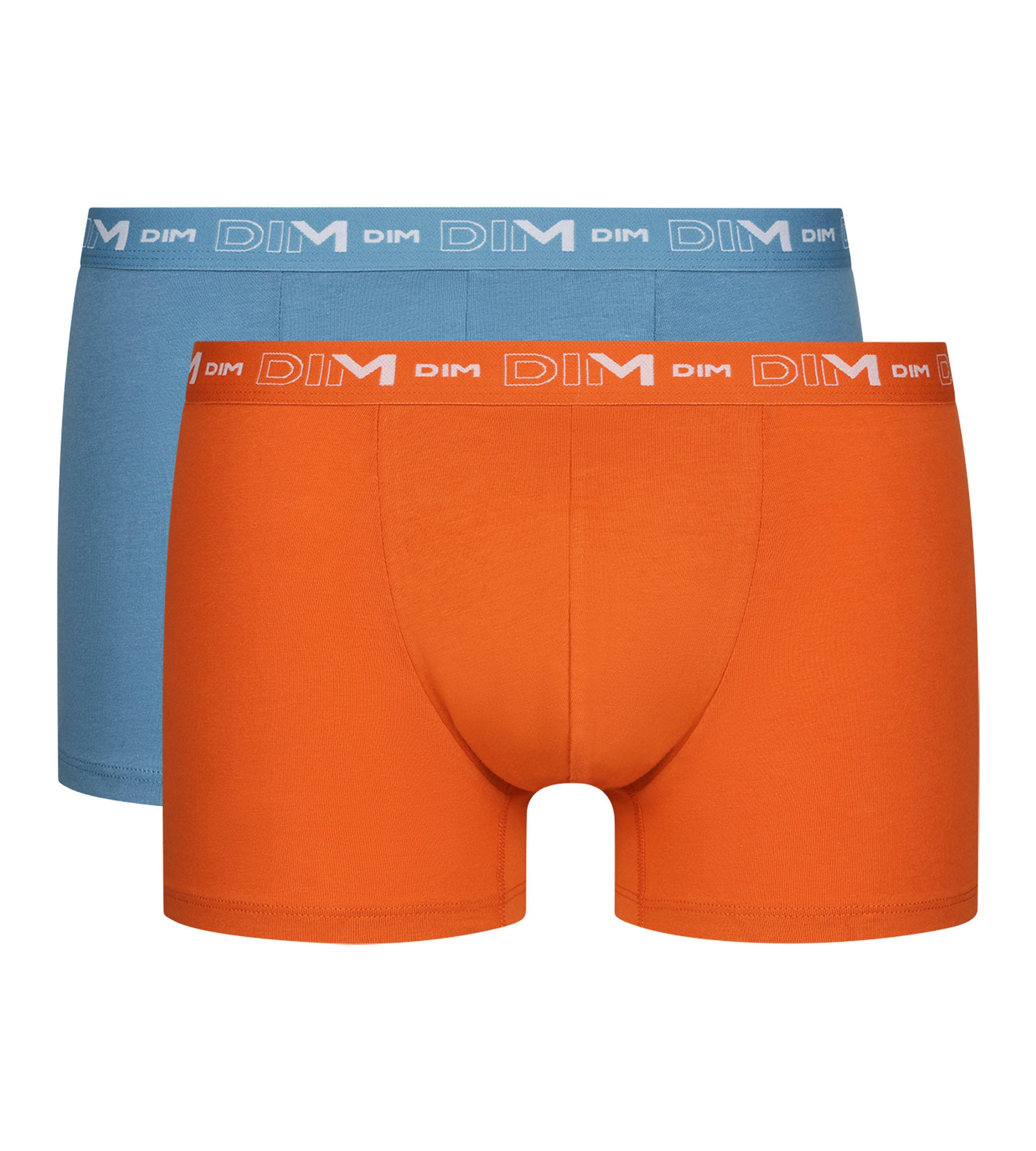 Apportez une dose de fraîcheur à votre lingerie quotidienne avec le lot de 2 boxers homme Dim Coton Stretch, en Bleu et Orange !
