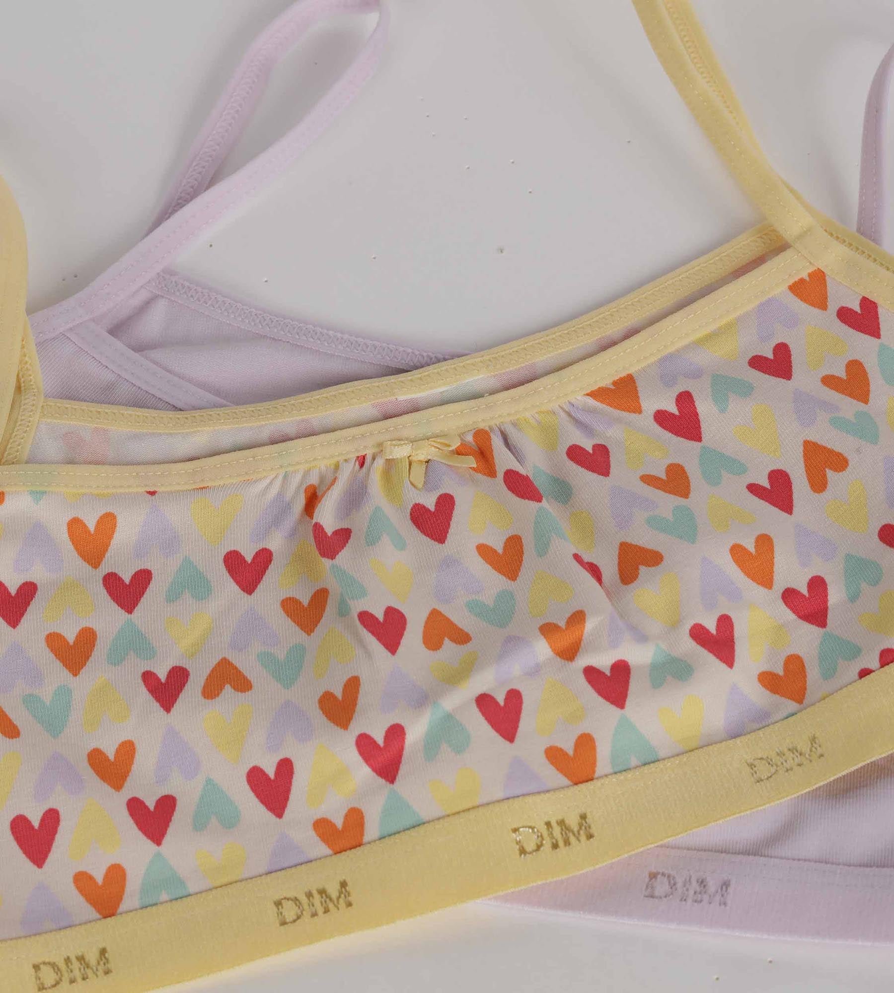 Lot de 2 brassières fille coton stretch Lila à motif coeur Les Pockets