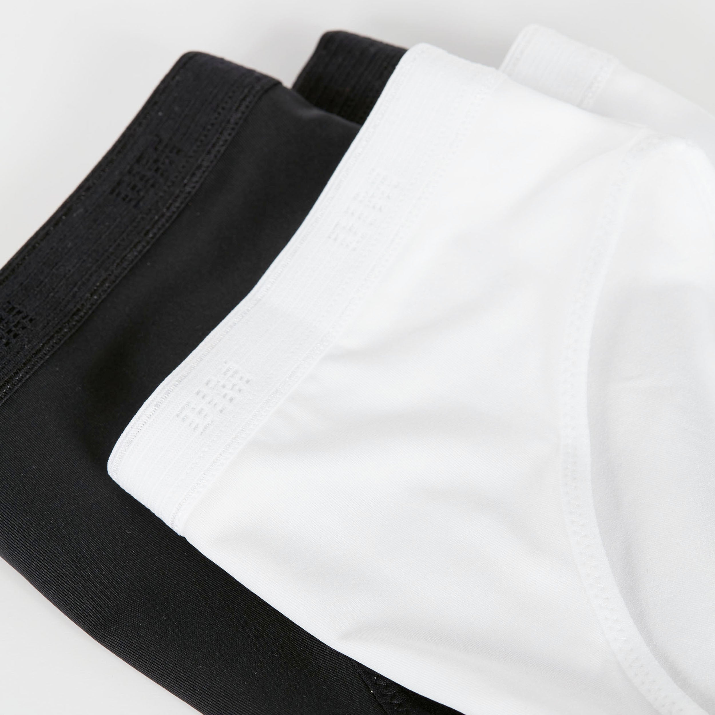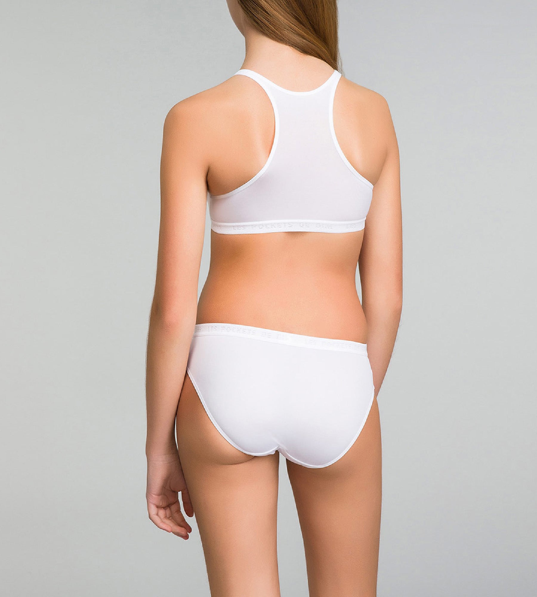 On adore ce lot de 2 culottes blanches, de la gamme Pocket Micro qui raviront les jeunes filles. Matière toute douce associée à la tendance de la bande logotypée, le match idéal pour ses premiers achats lingerie.
