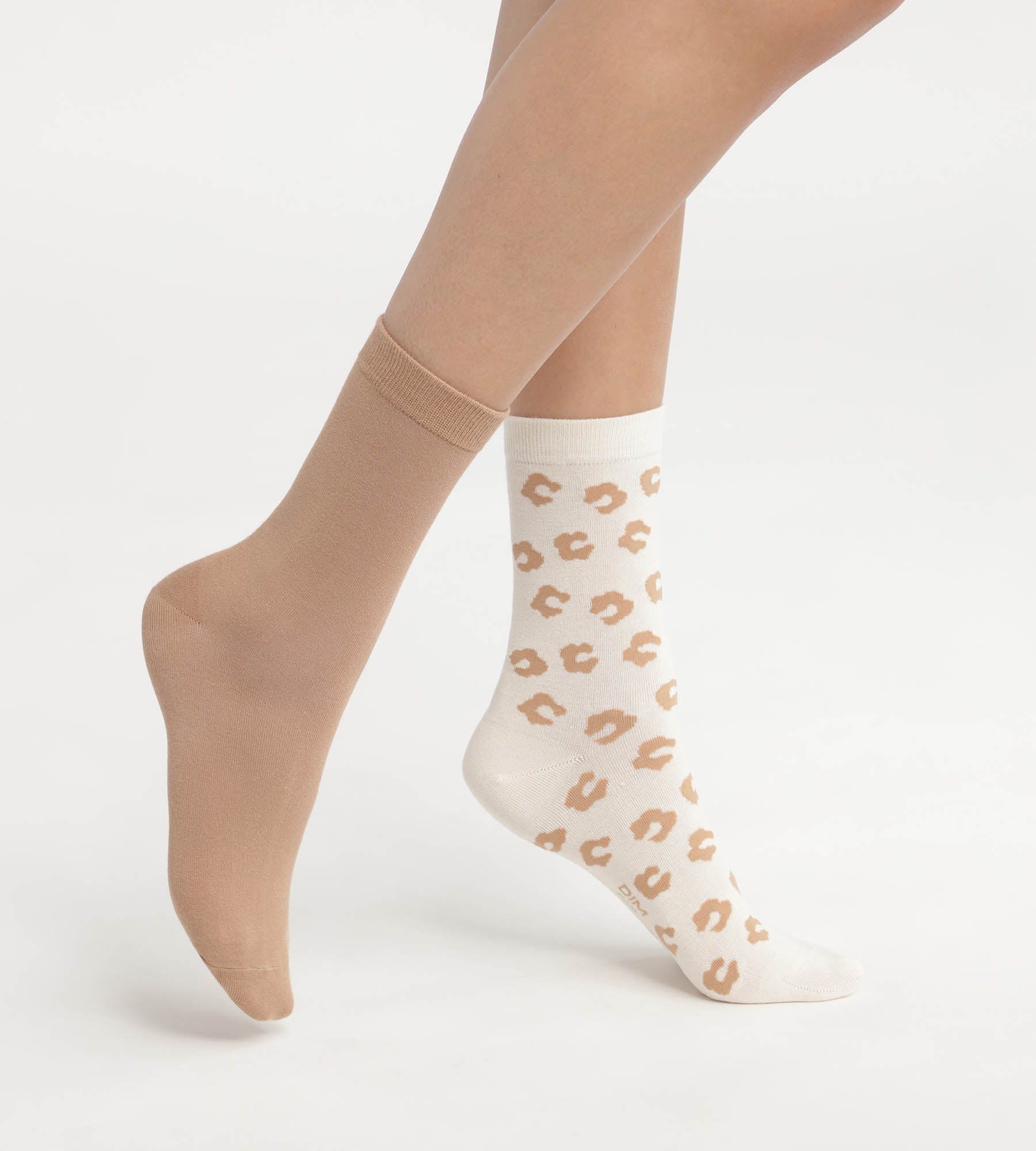 Alliez confort et modernité avec le lot de 2 paires de chaussettes femme aux impressions florales Crème Dim Bambou !