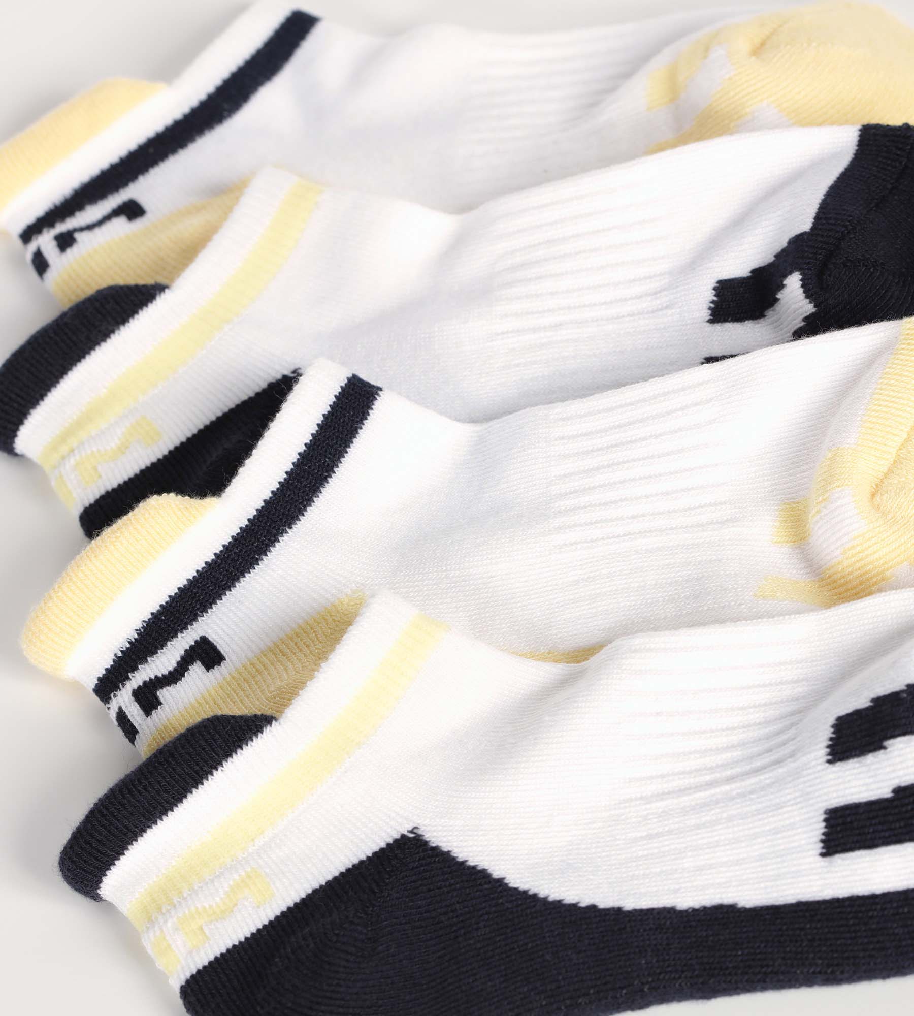 Conçues pour accompagner vos séances sportives ou vos journées actives, ces chaussettes unisexes Dim Sport associent performance, confort et style. Grâce à leurs zones renforcées sur la semelle, les talons, les pointes et le tendon d’Achille, les chaussettes basses Dim Sport atténuent efficacement les impacts tout en restant discrètes. En blanc neutre, avec des détails noir et banane, ce lot de chaussettes de sport Dim complète vos tenues techniques avec dynamisme.