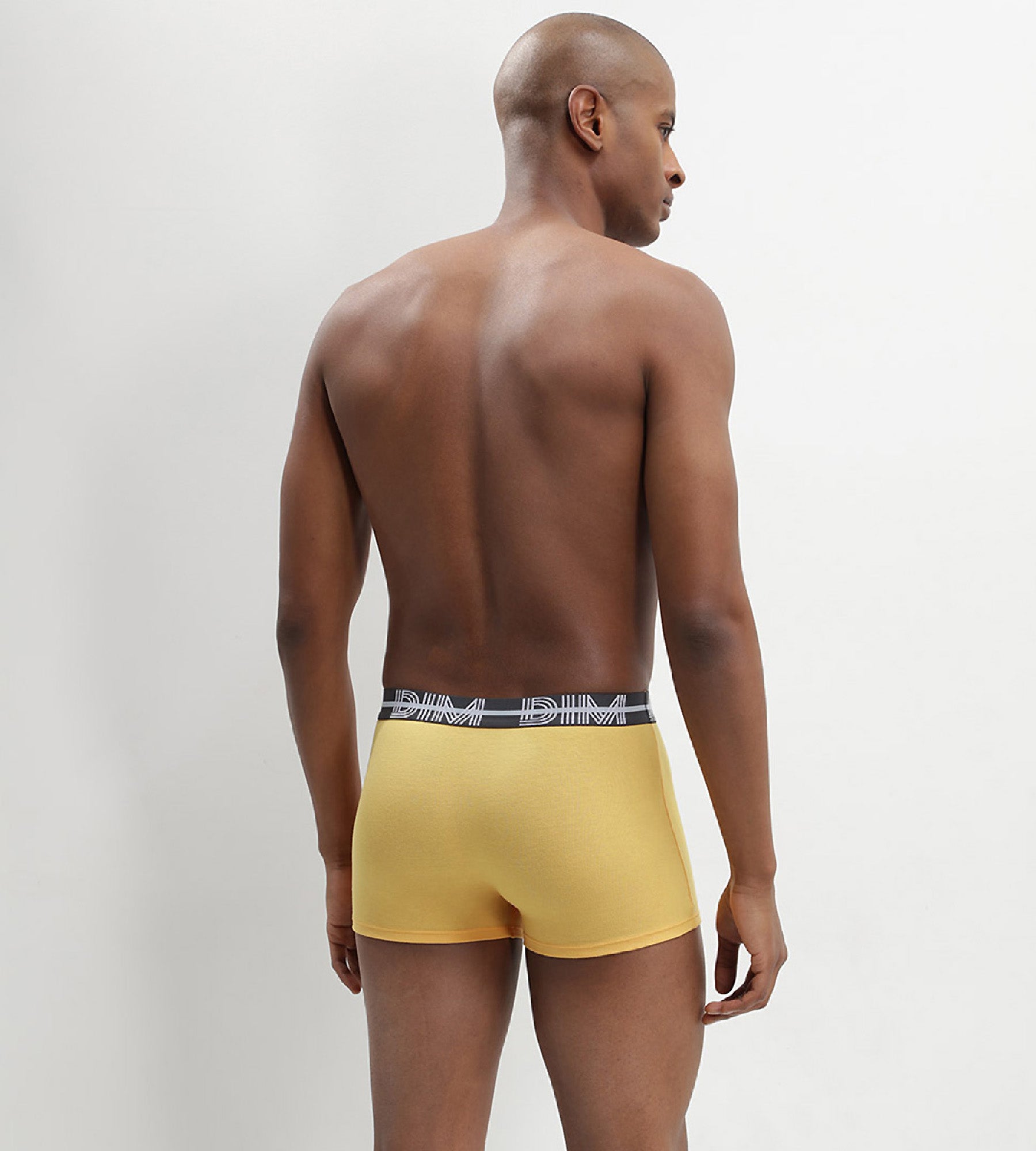 Vous voulez être à l’aise et branché la fois ? Le modèle de boxer homme Powerful aux couleurs vives, fabriqué en coton stretch ultra doux est fait pour vous ! Composé de 3 pièces de lingerie homme gris souris cocooning, jaune mimosa insolent et bleu acier distingué, ce lot donne du pep’s à vos tenues. Le détail qui fait mouche ? la ceinture au logo Dim effet relief et ligne contrastante qui dépasse légèrement de votre jean.