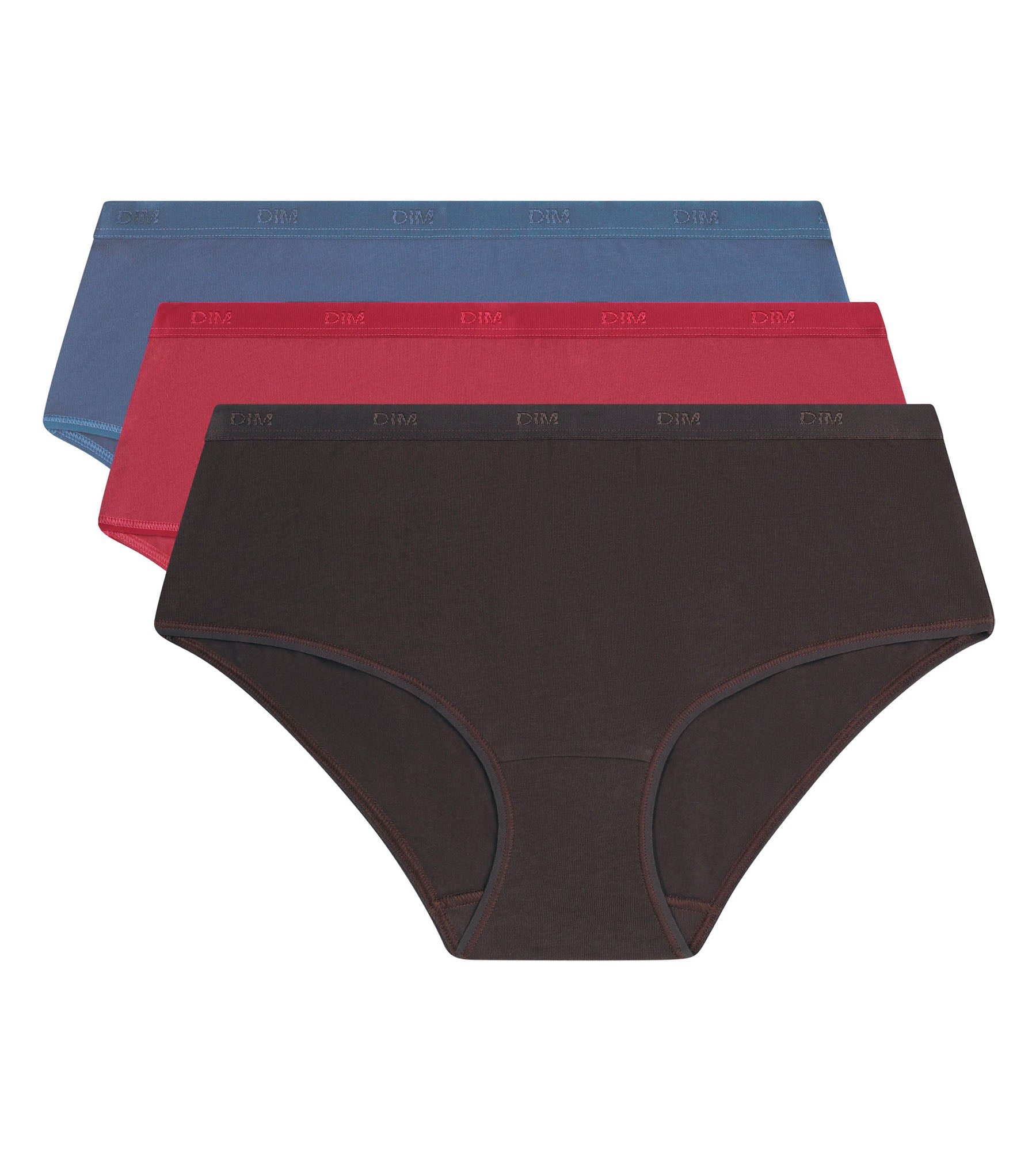Adoptez un style puissant avec le lot de 3 boxers femme Les Pockets Ecodim en coton stretch, aux coloris bleu, rouge et gris affirmés.