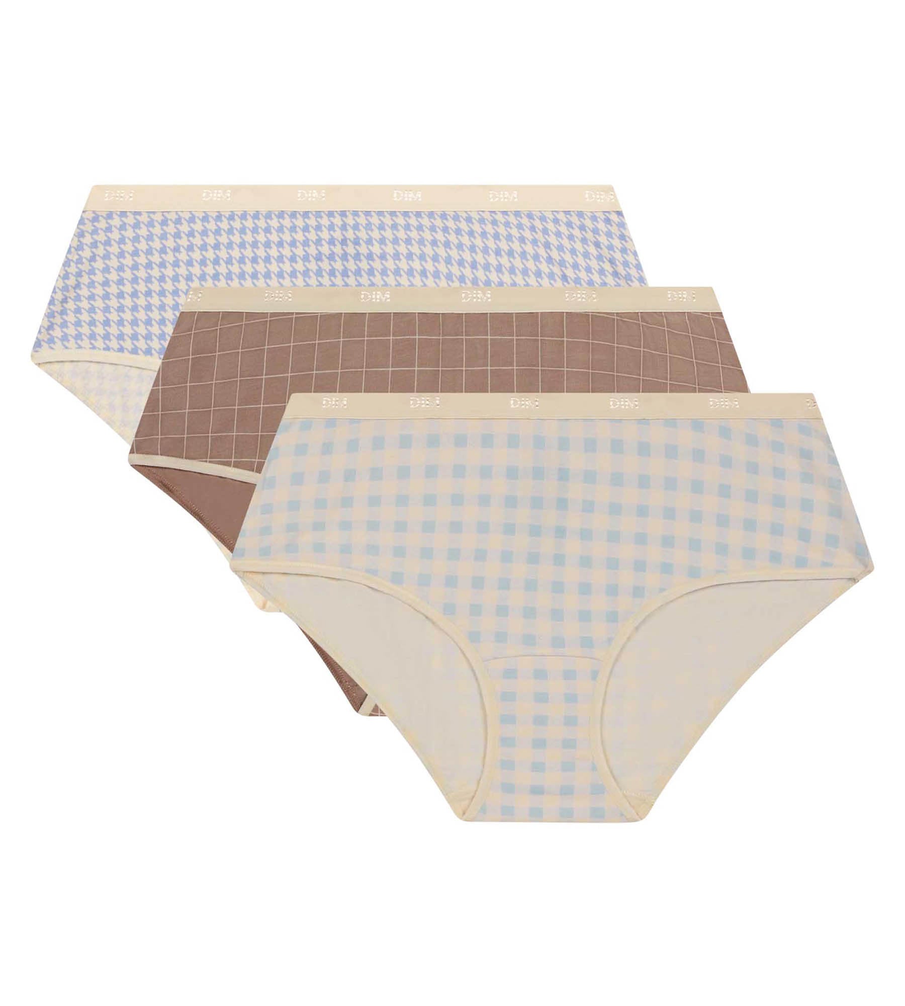Lot de 3 boxers femme motifs vichy Bleu Beige Les Pockets