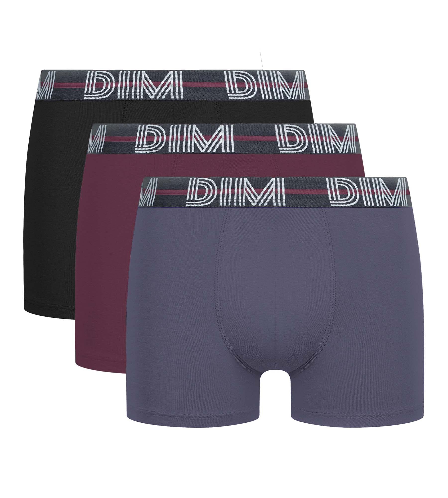 Adoptez un look fort et éclatant avec le lot de 3 boxers homme Dim Powerful en coton stretch Noir, Rouge Merlot, Bleu Indigo !