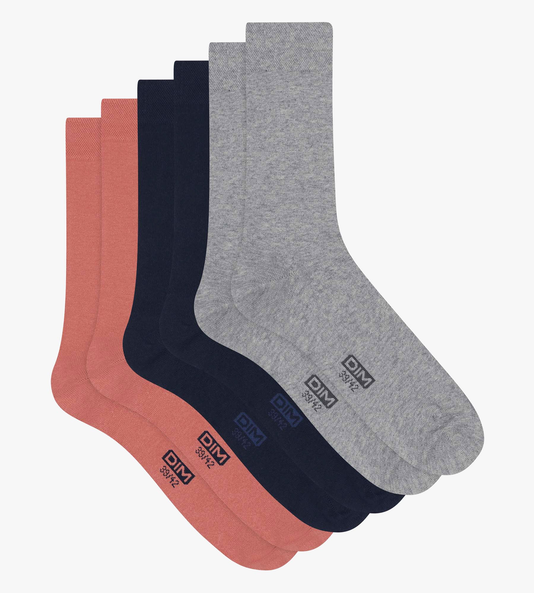 Misez sur le lot de 3 paires de chaussettes hautes homme Marine, Rose, Gris Dim Coton, pour un confort optimal et un style intemporel !