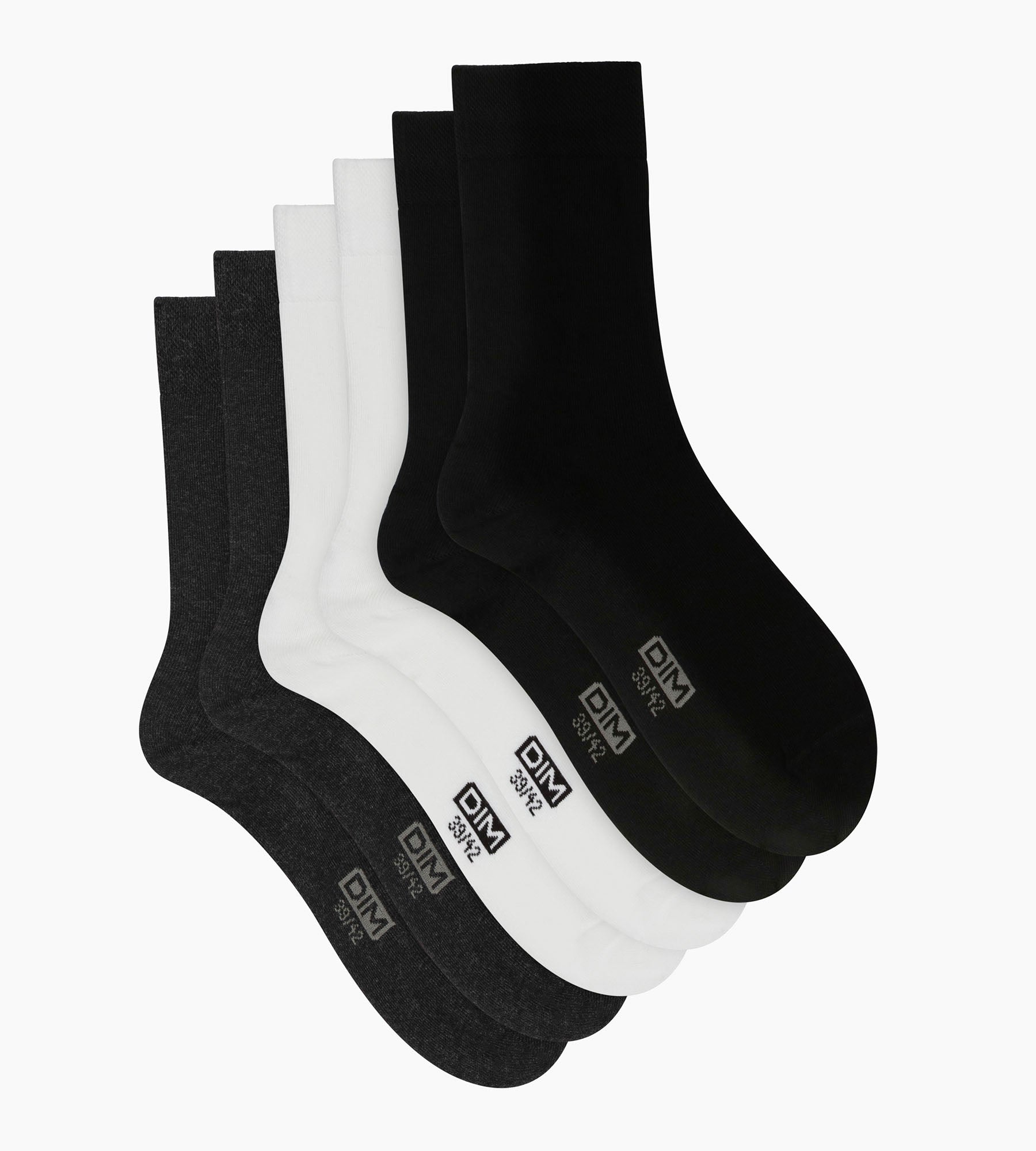 Sobres et versatiles, ce lot de chaussettes homme mi-mollet en coton Anthracite, Noir, Sucre Dim Coton associe Anthracite Chiné, Tuxedo est idéal pour le quotidien.