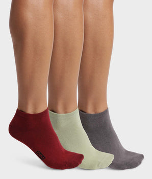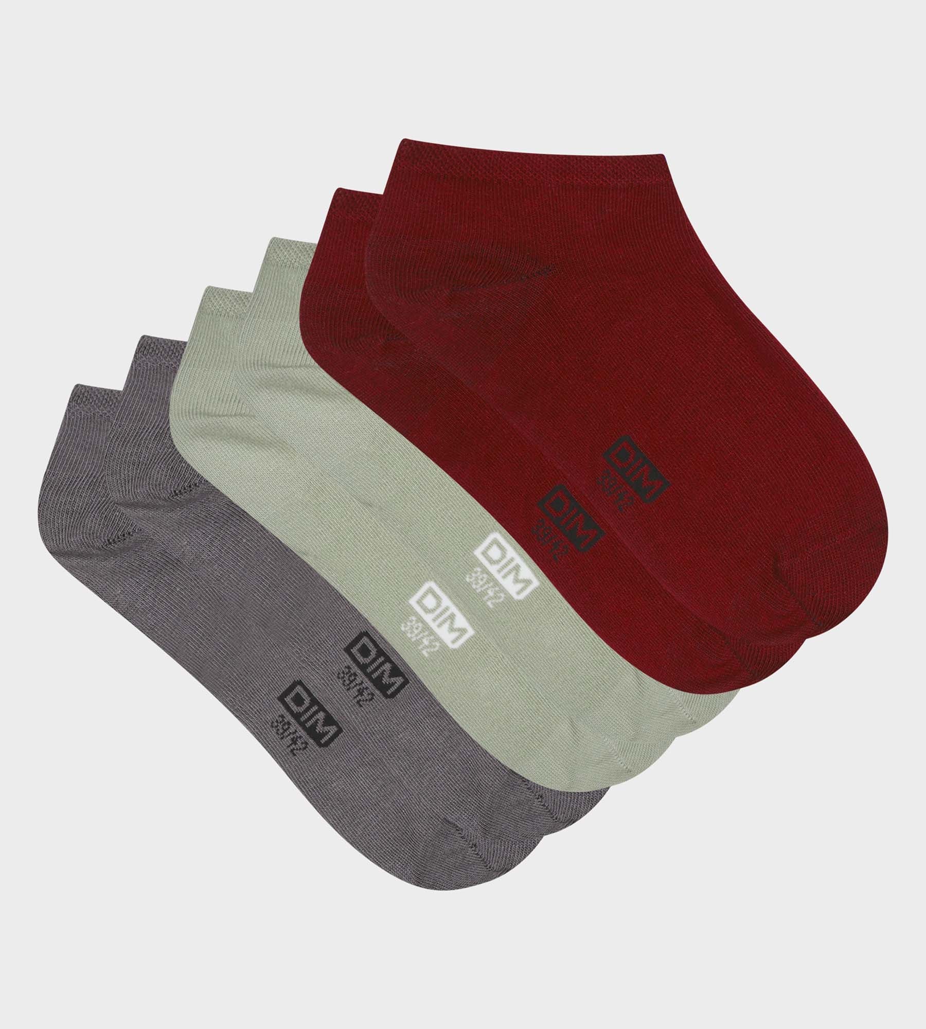 Lot de 3 paires de socquettes homme Gris Rouge Sauge Dim Coton