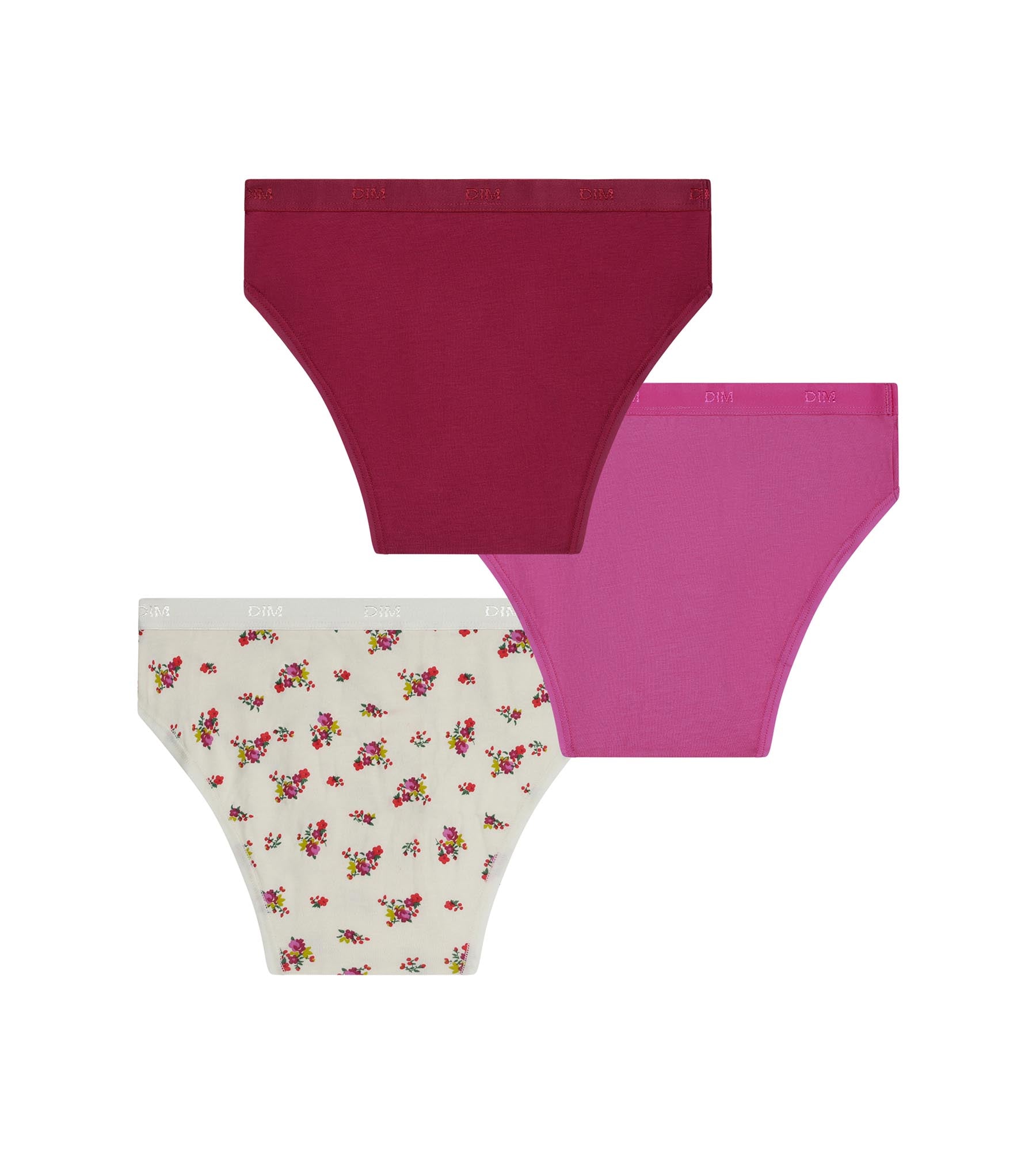 Ce pack de 3 culottes Dim fille Les Pockets mise sur un univers fleuri ultra dynamique : une culotte ado écrue parsemée de fleurs framboise, un modèle framboise uni avec un mini bouquet brodé et un slip fille violet punchy. Les couleurs vibrantes donnent un look très mode, tout en restant faciles à porter au quotidien. Grâce au coton stretch, chaque slip fille enveloppe la silhouette avec douceur et reste confortable toute la journée. Les Pockets Liberty Violet sont une option parfaite pour les filles qui aiment les motifs joyeux et veulent une lingerie à la fois pratique et pleine de personnalité.