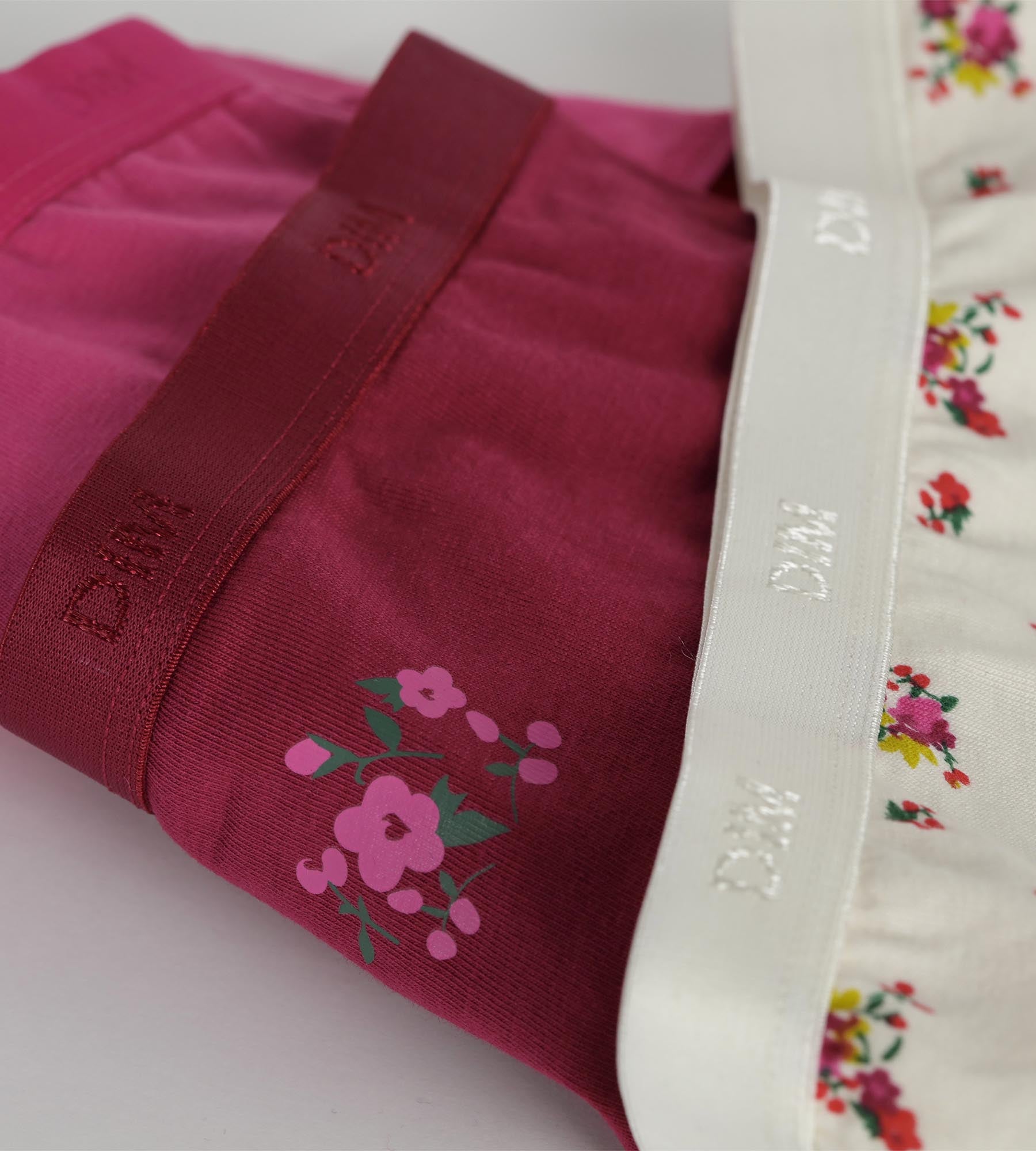 Ajoutez une touche fleurie à son quotidien avec le lot de 3 slips fille Les Pockets Violet Rose en coton stretch.