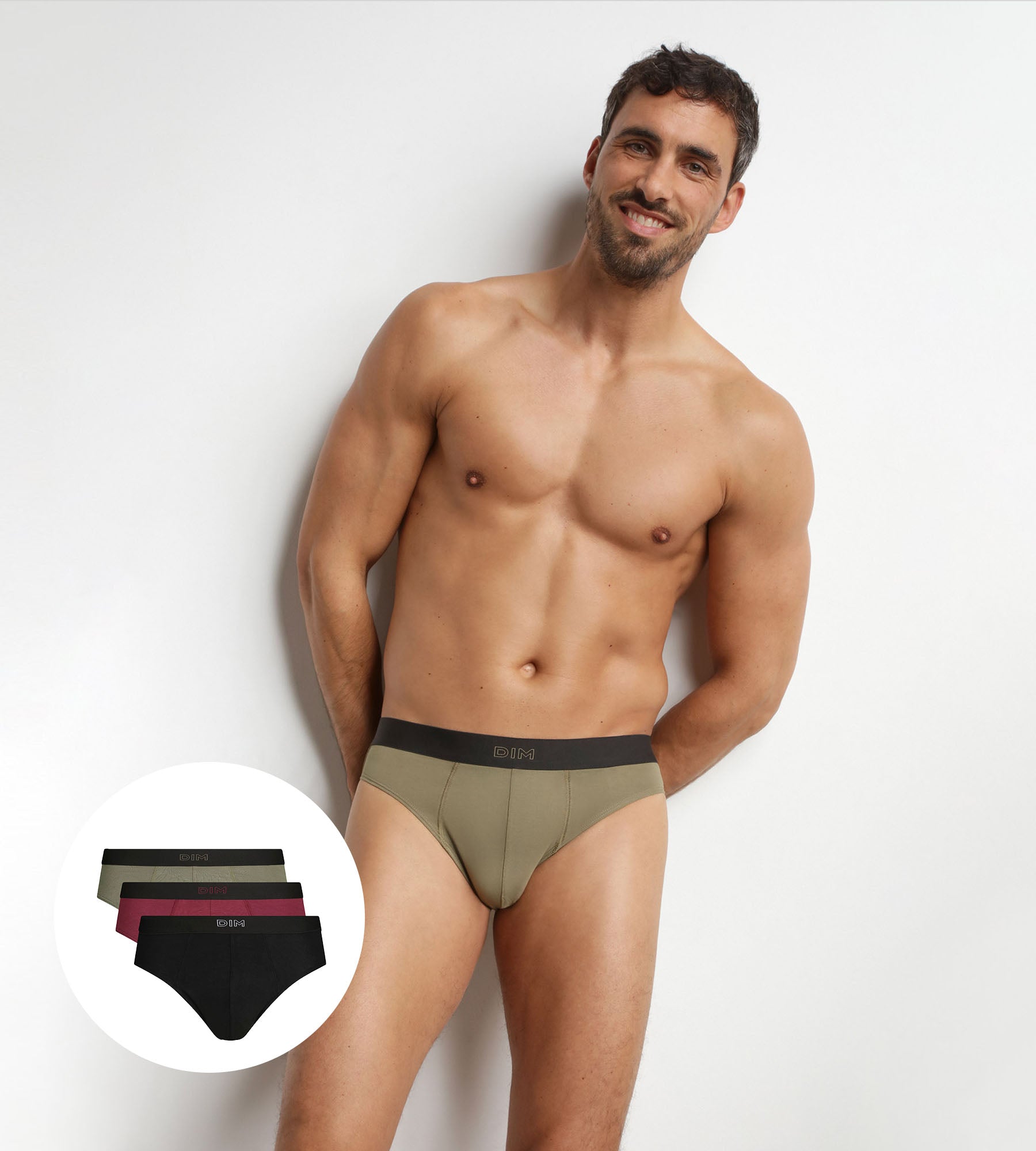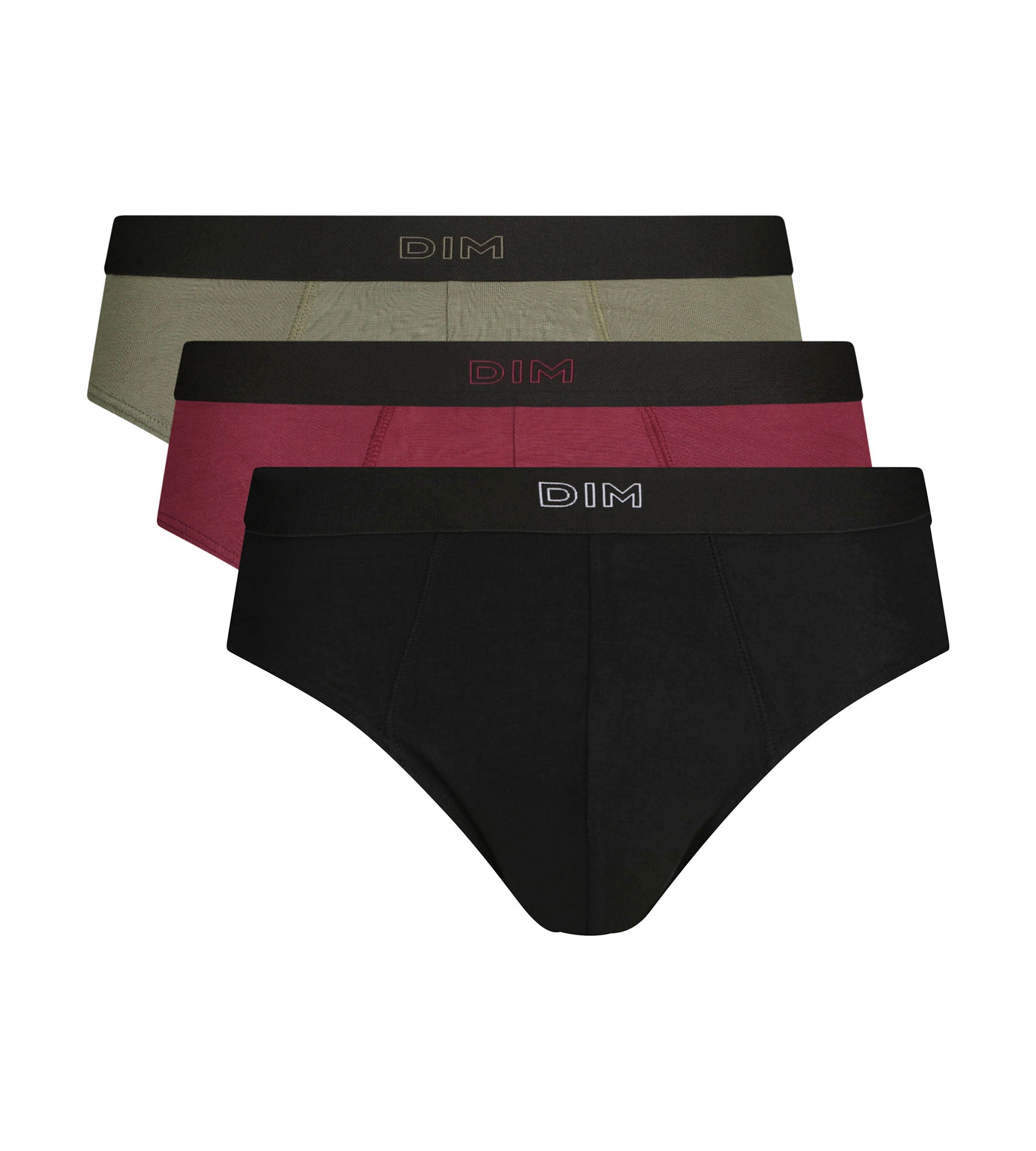Renouvelez vos basiques avec le lot de 3 slips homme Dim Pur Confort en coton viscose Noir, Kaki et Rouge, pensé pour conjuguer confort quotidien et charisme.