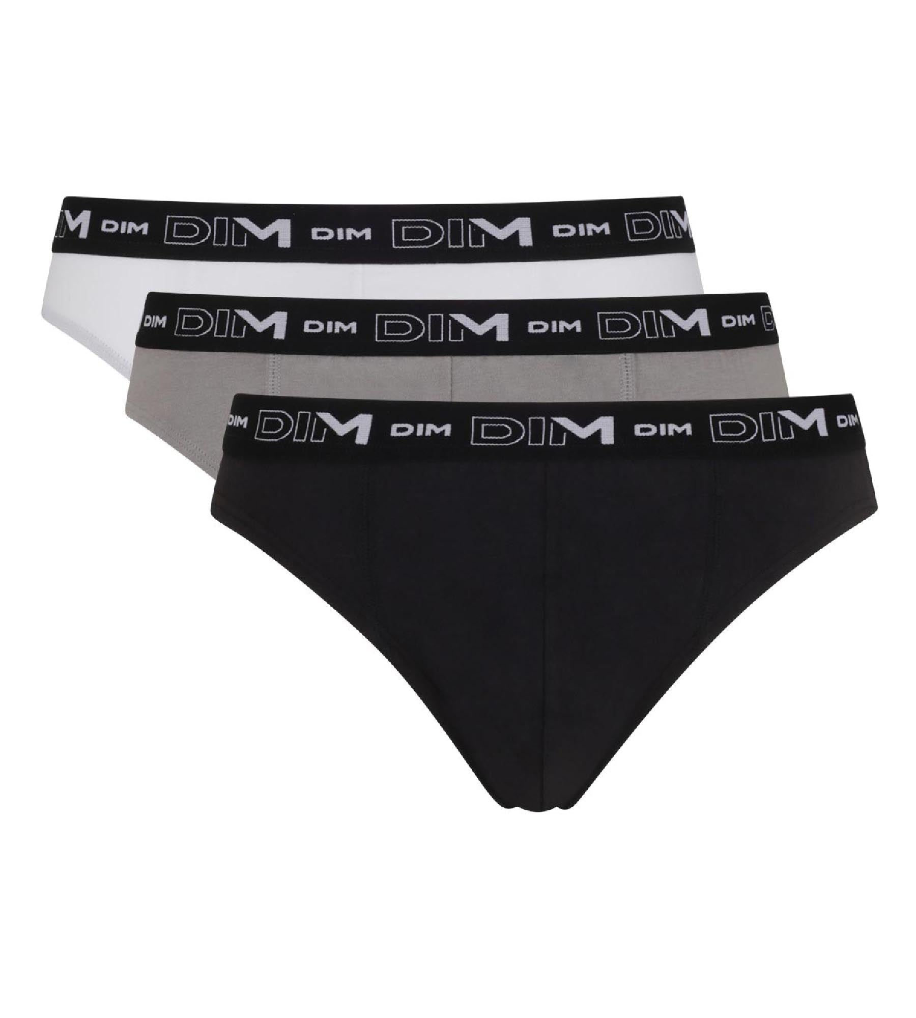 Lot de 3 slips noir, gris et blanc Homme en coton stretch