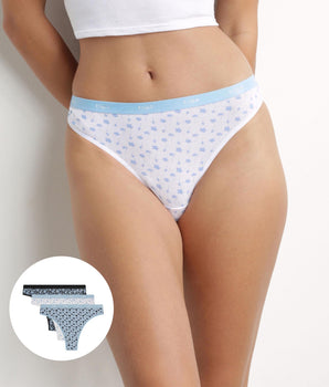 Lot de 3 strings femme en coton stretch Bleu Gris à fleurs Les Pockets