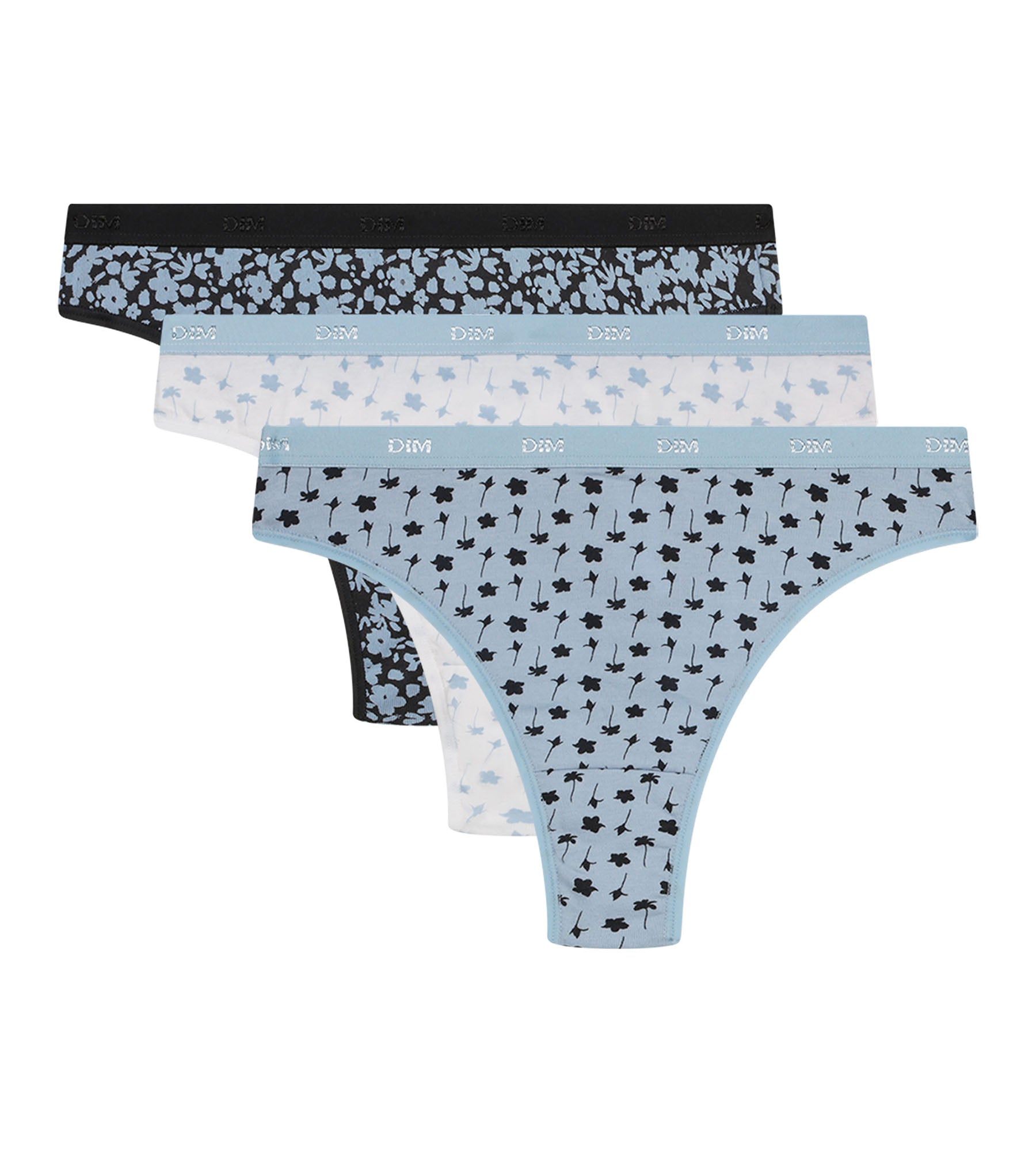 Composé de 2 strings femme bleu ciel et blanc ornés de fleurs délicates, et d’un string femme anthracite tapissé de fleurs bleues, le lot de 3 dessous Les Pockets allie modernité et féminité ! Grâce à son tissu extensible en coton stretch et à ses finitions souples, le pack de 3 strings pour femme Dim assure un confort optimal et reste invisible sous les vêtements.