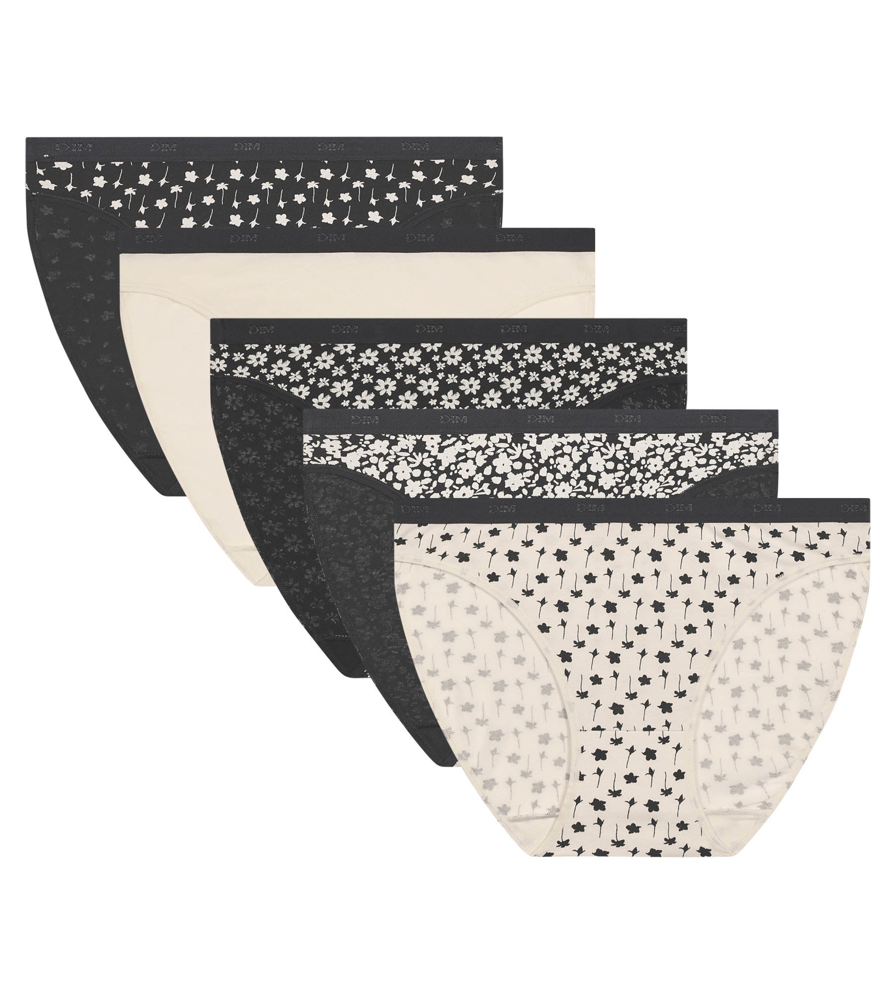 Succombez au style iconique du lot de 5 culottes femme en coton stretch Noir et Écru Les Pockets à motif floral !