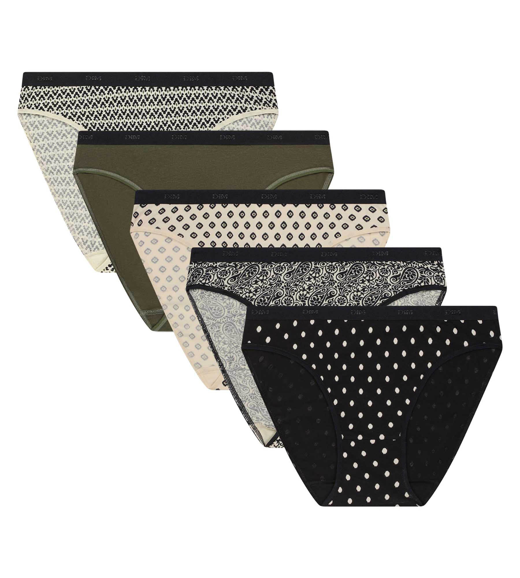 Lot de 5 slips femme motifs Ethnique Kaki Noir Les Pockets