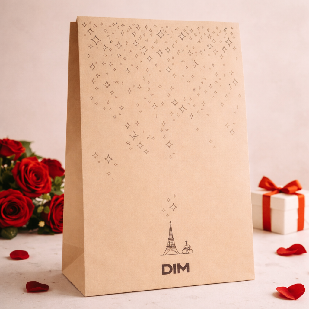 Sublimez vos cadeaux avec l’emballage cadeau en kraft, spécialement pensé pour accompagner vos achats de lingerie avec élégance. Fabriqué dans un beau kraft épais et recyclable, ce sac cadeau est orné de délicates étoiles et d’un motif parisien iconique, pour un rendu chic, festif et authentique.