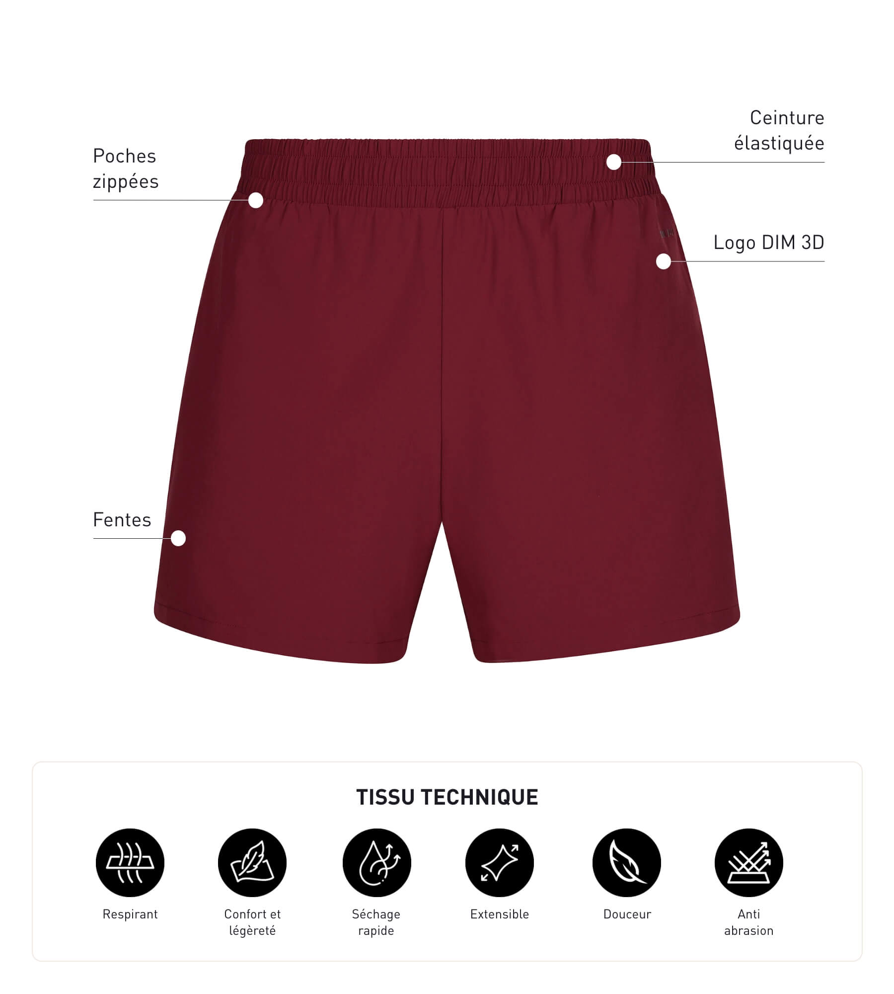 Short de sport homme en matière aérée Bordeaux Dim Move