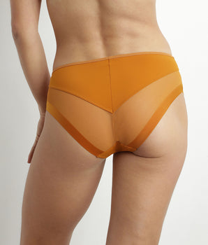 Apportez une dose de vitamine à votre lingerie avec la culotte femme en microfibre et tulle Marron Oran Dim Generous Classic.