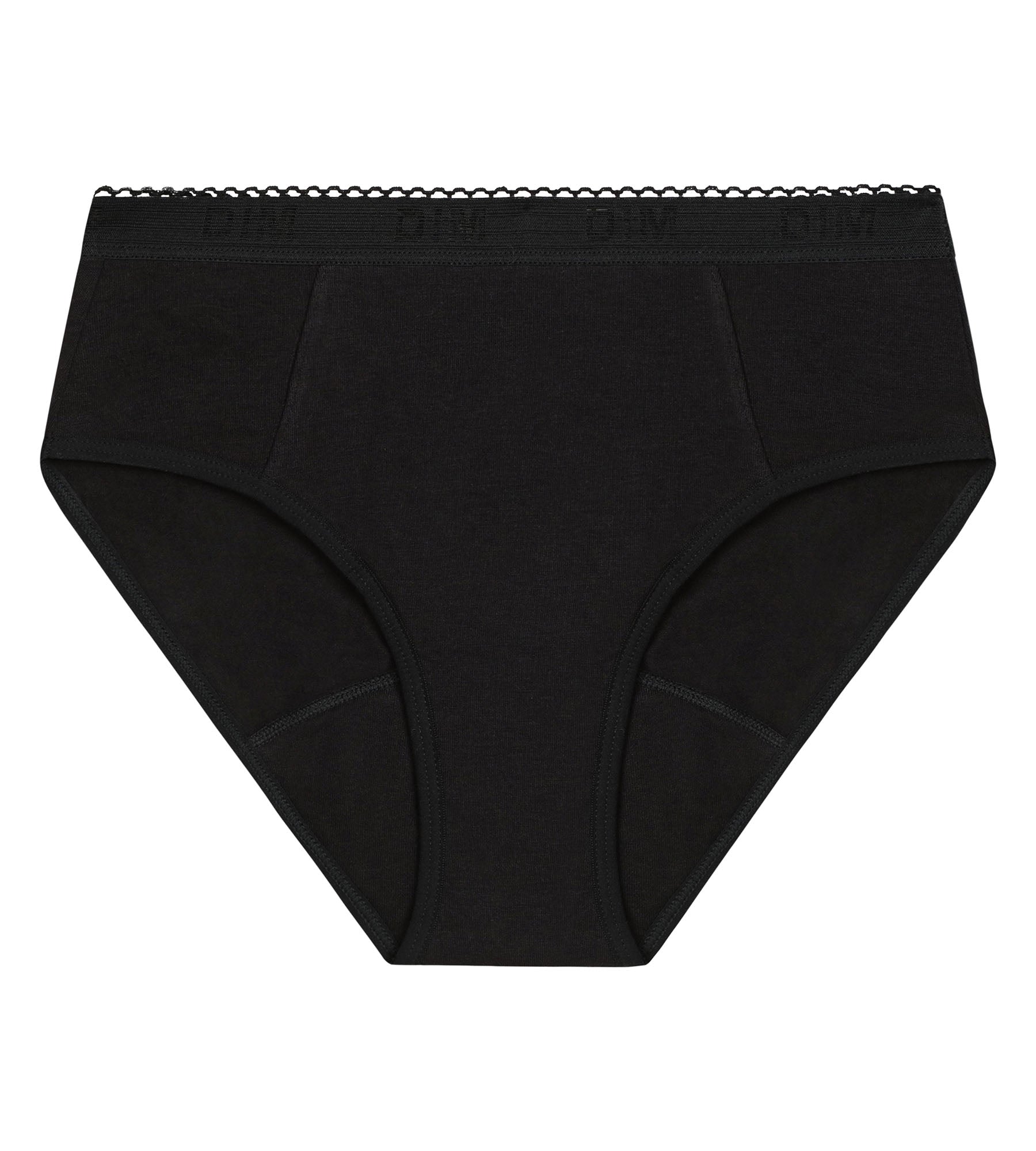 Abordez les premiers cycles en toute confiance avec la culotte de règles My Protect en coton bio noir pour flux moyen.