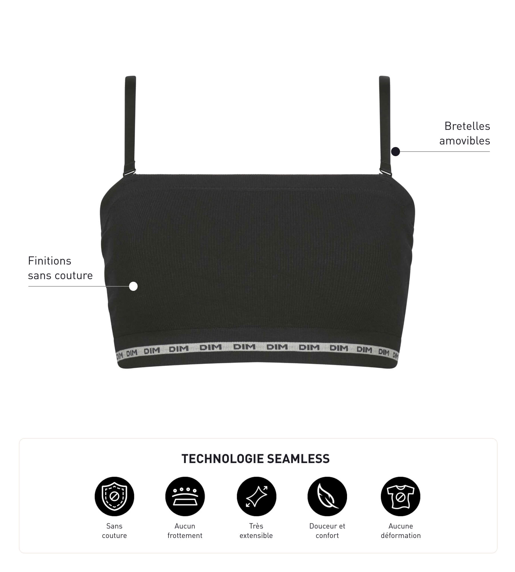 Abordez la journée sans contrainte avec le soutien-gorge bandeau sans armature en modal polyamide Noire Dim Icons Seamless !