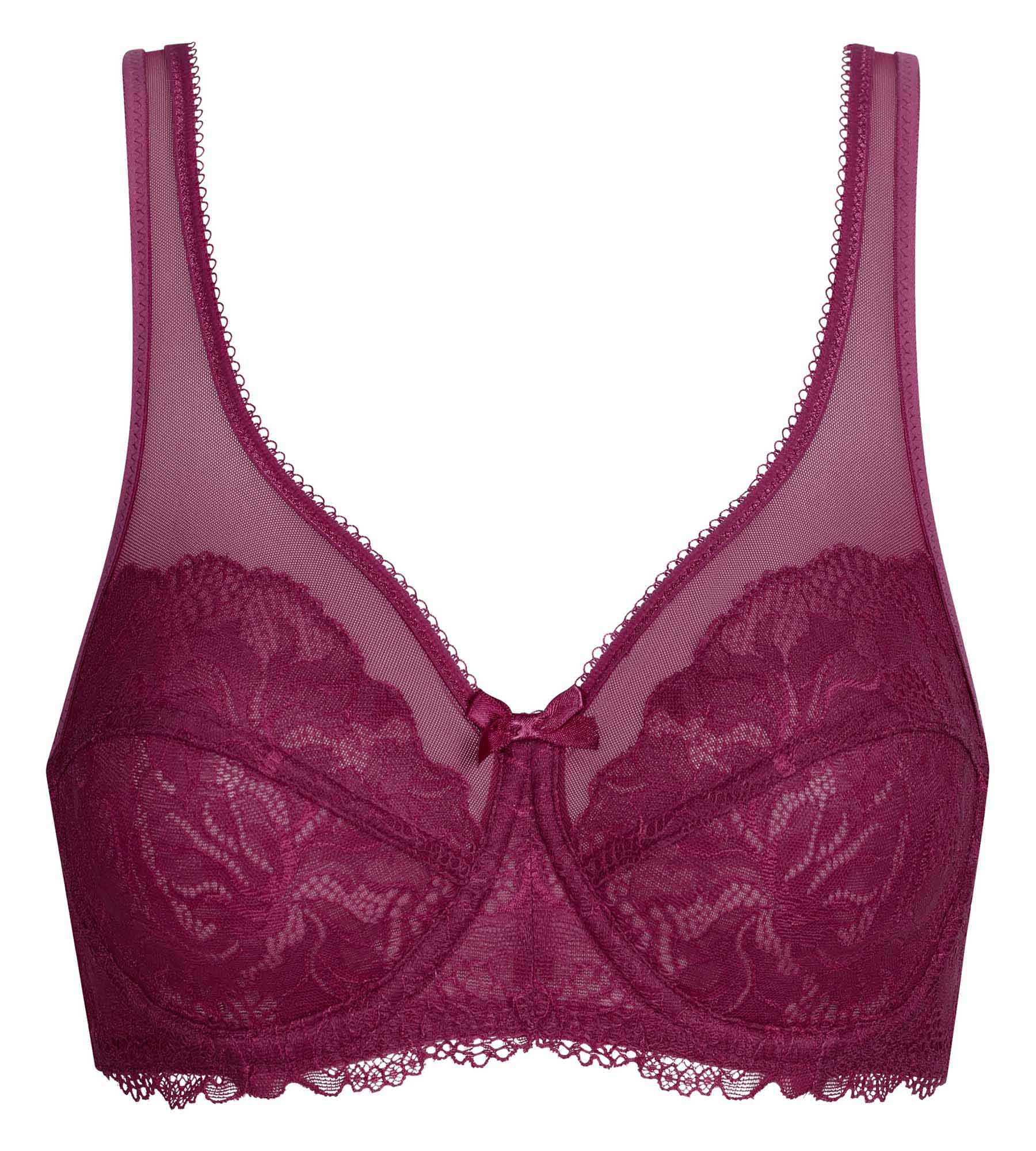 Alliez élégance et maintien avec le soutien-gorge emboîtant Generous Essentiel Dim, en dentelle rouge sangria profonde.