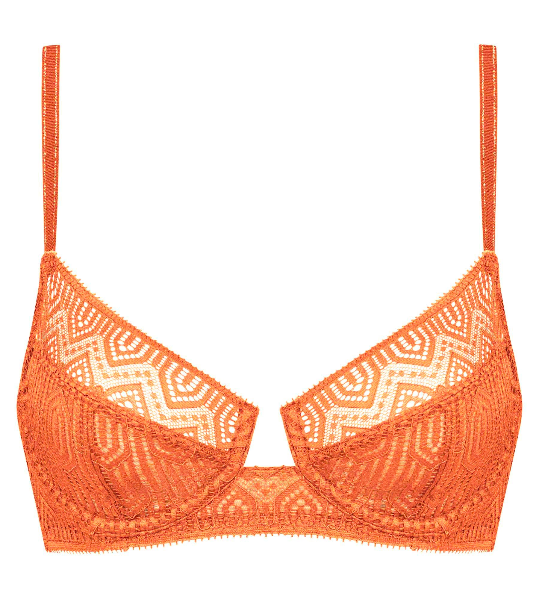 Affichez un look glamour et contemporain avec le soutien-gorge emboitant à armatures Mod de Dim en dentelle géométrique Noisette !