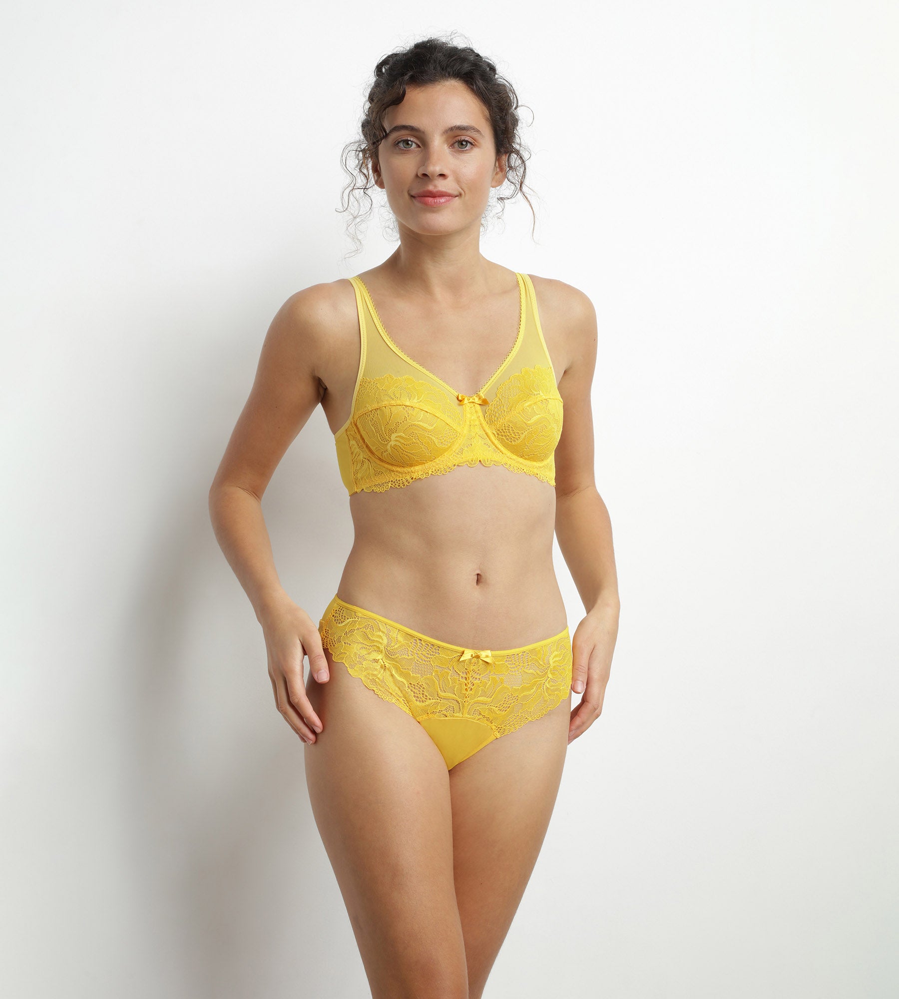 Succombez au style vibrant et féminin du soutien-gorge emboîtant Generous Essentiel de DIM en dentelle Jaune Mirabelle !