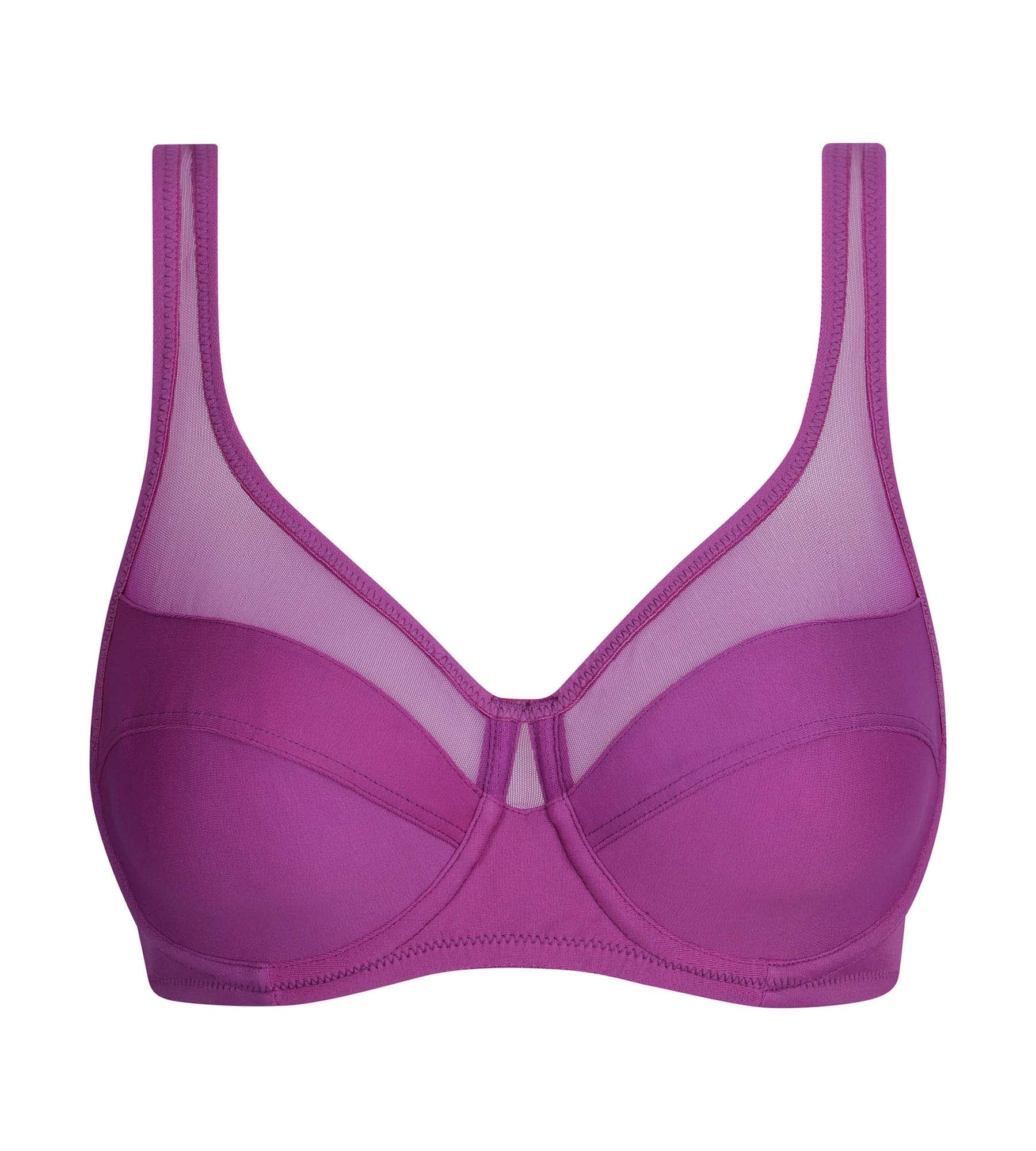 Misez sur le soutien-gorge à armatures Dim Generous en microfibre et tulle Violet Cassis qui accompagne toutes vos journées avec confort et maintien.