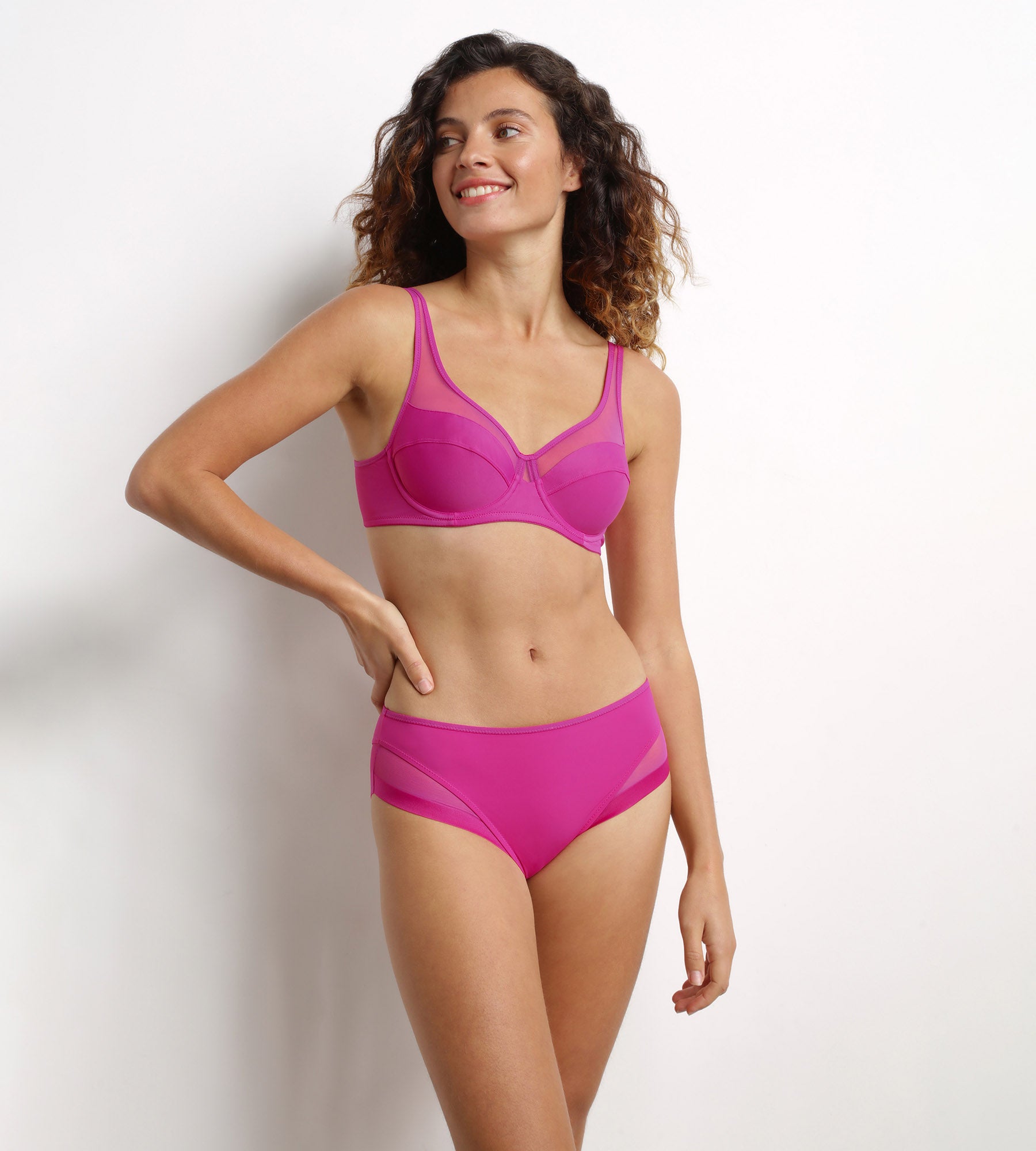 Soutien-gorge emboîtant en microfibre et tulle Fuchsia Dim Generous