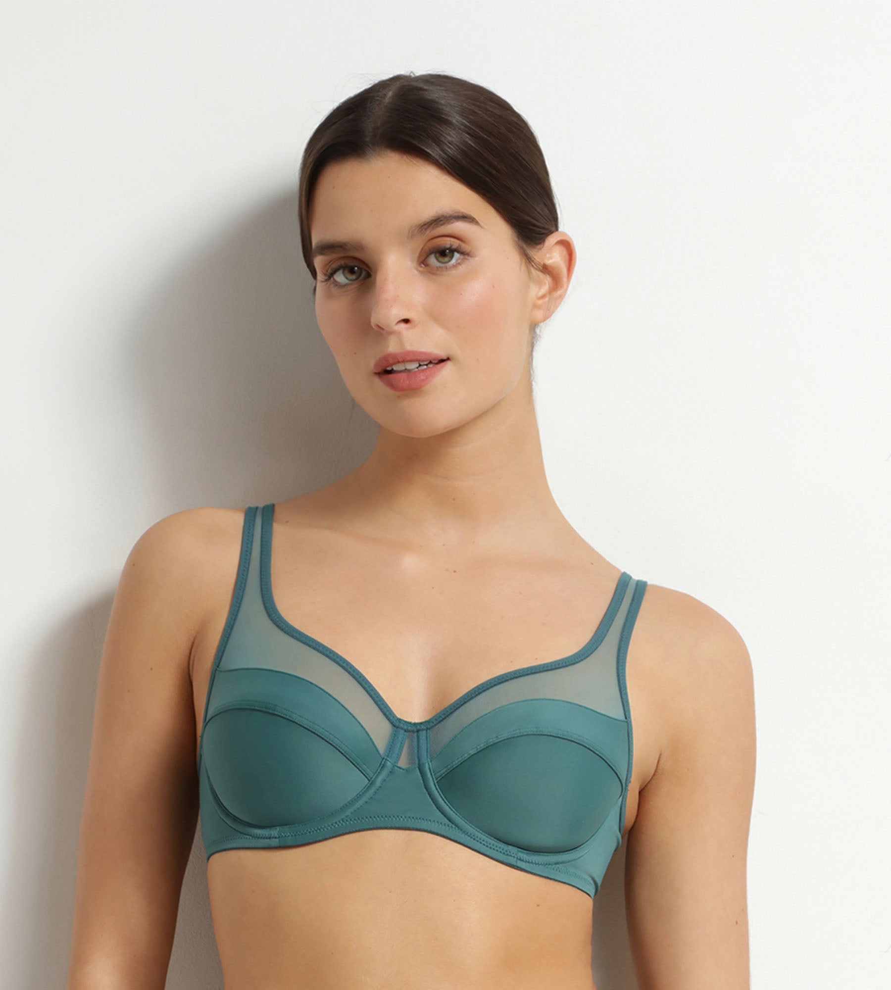 Soutien-gorge emboîtant en microfibre et tulle Vert Émeraude Generous