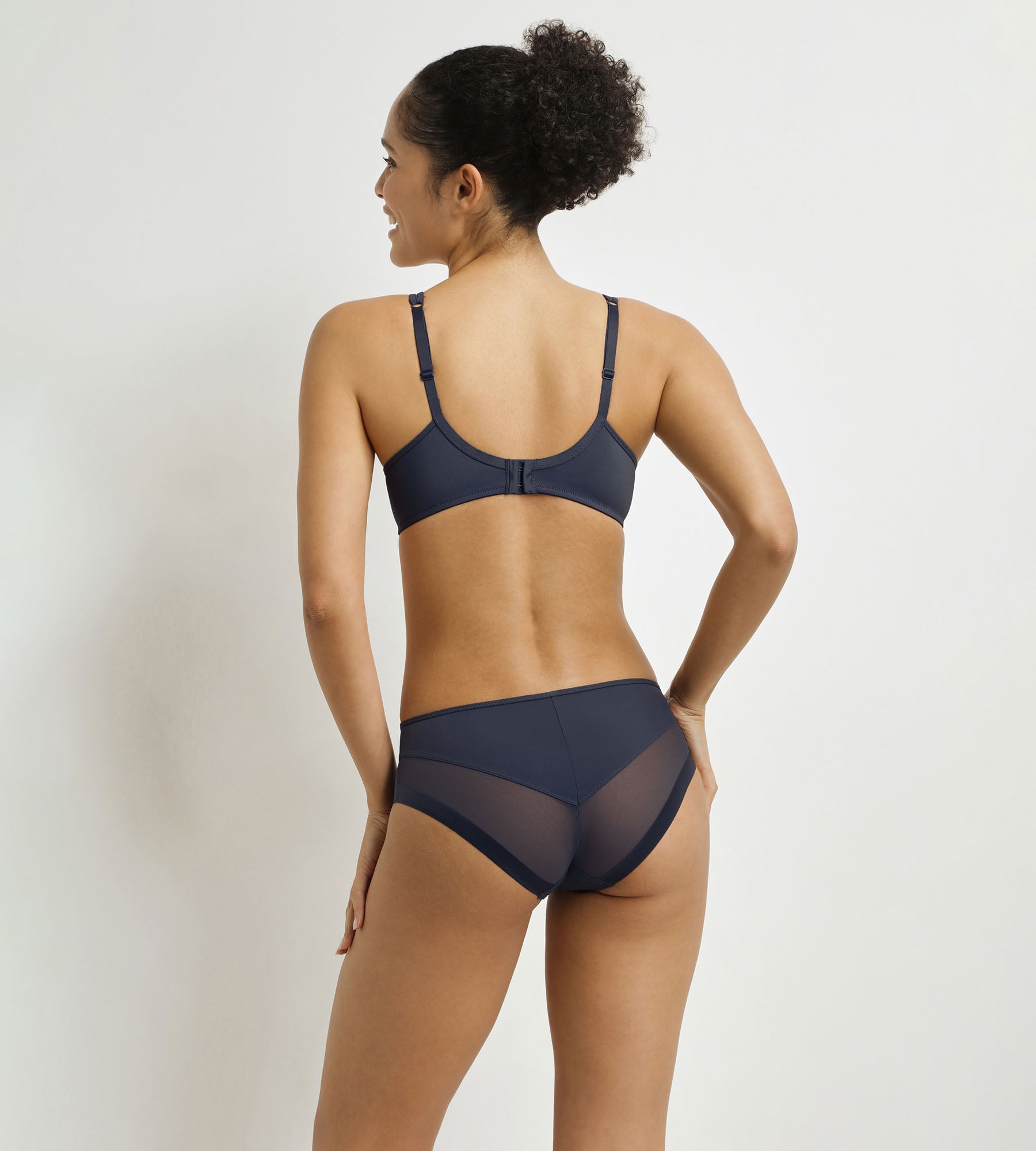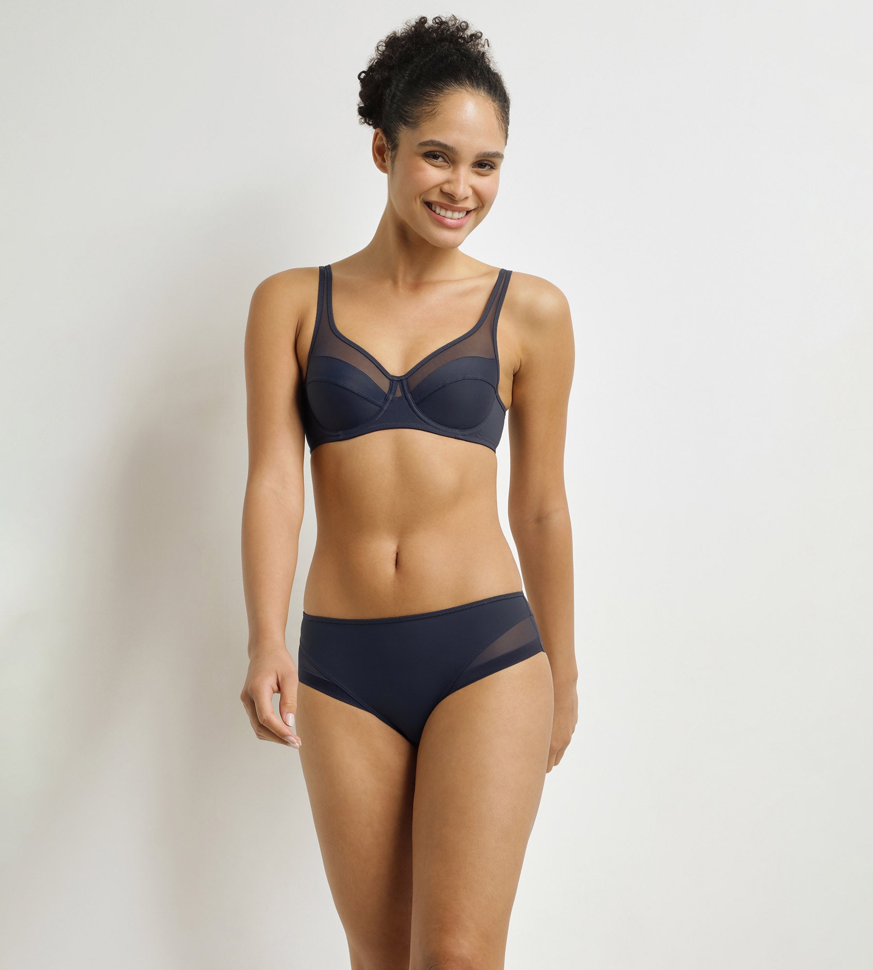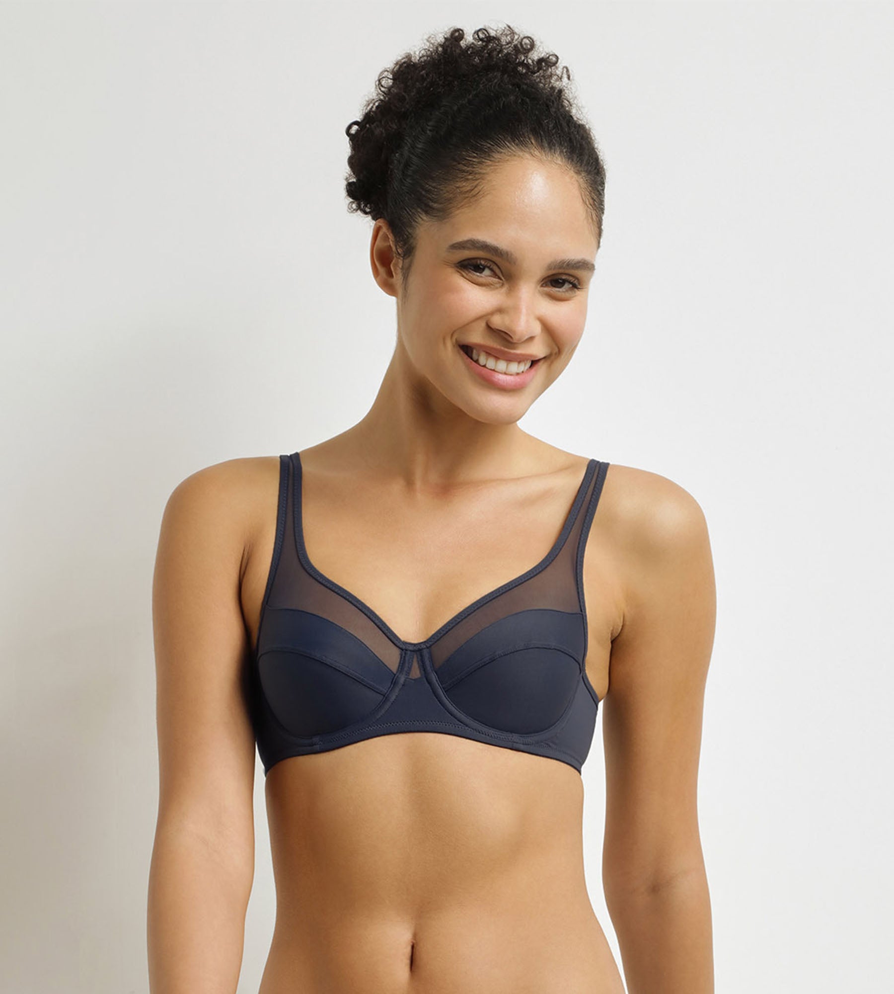Alliez maintien, modernité et légèreté avec le soutien-gorge emboîtant Generous en microfibre et tulle Bleu.