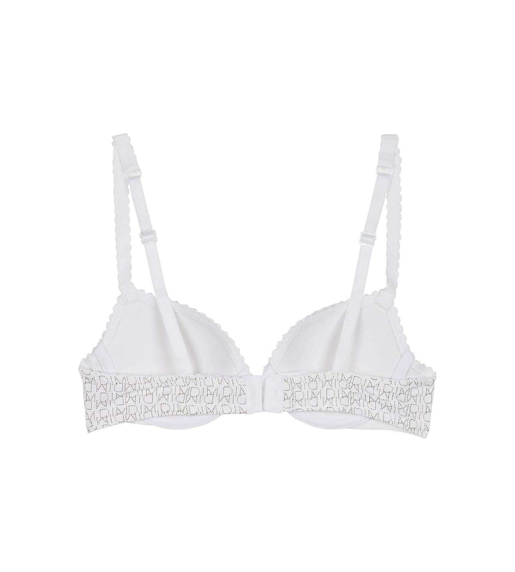- Liseré en dentelle ronde graphique sur les bonnets et bretelles