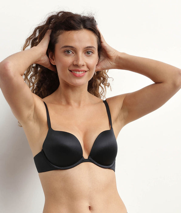 Sublimez votre féminité avec le soutien-gorge push-up Dim Beyond Sexy en microfibre noir, à la fois confortable et séduisant !