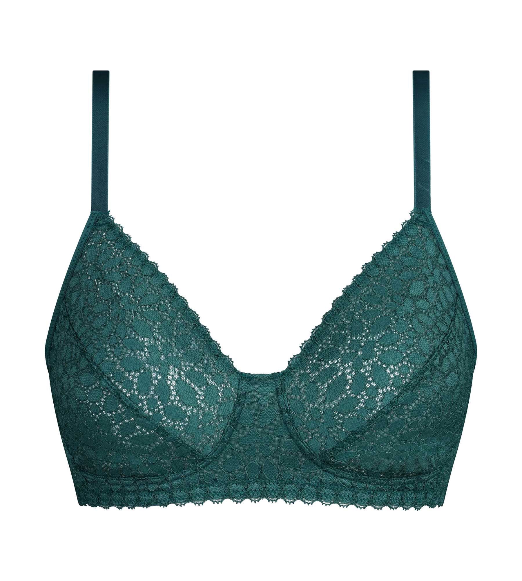 Soutien-gorge sans armatures en dentelle florale verte Daily Dentelle