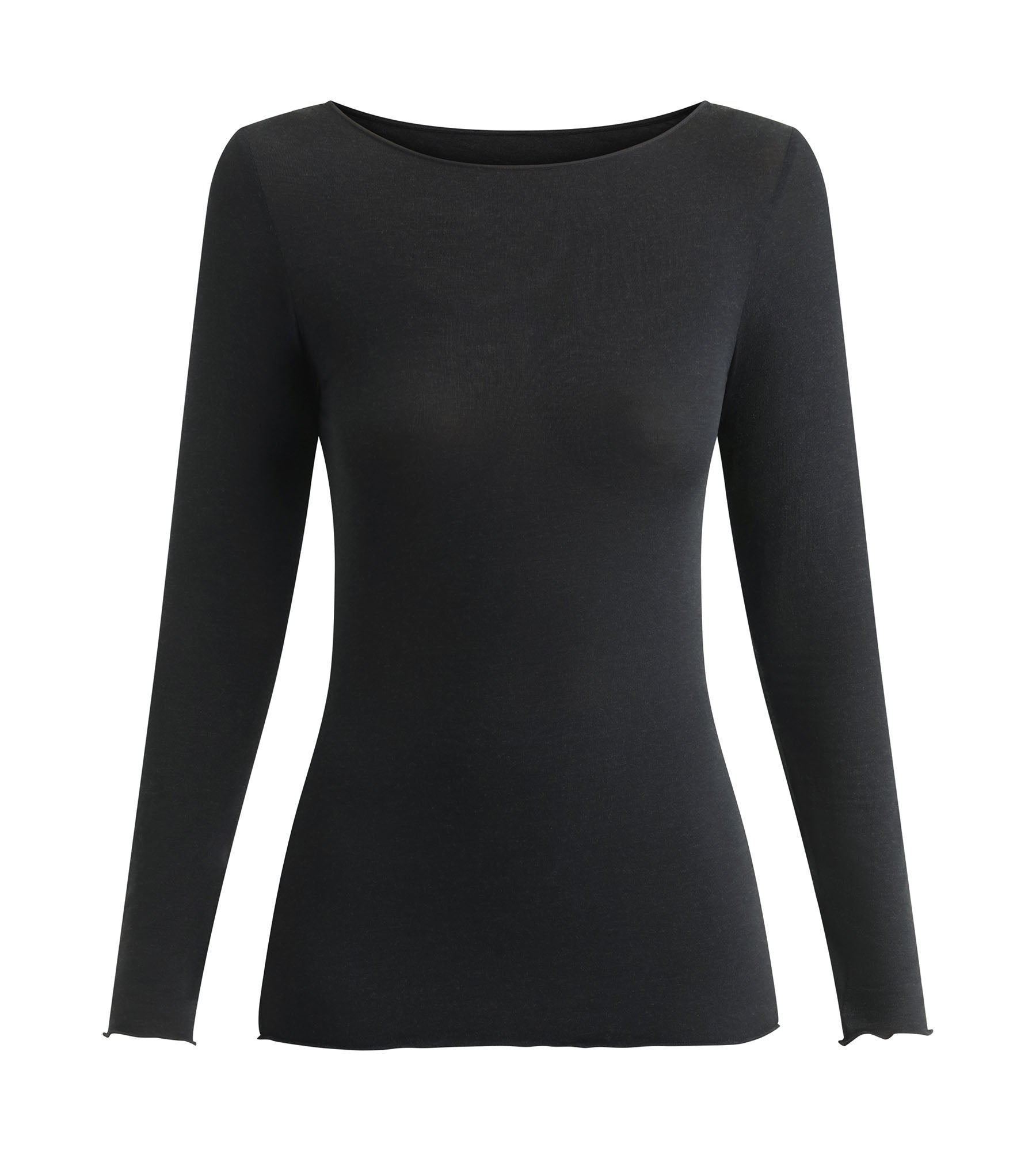 Restez au chaud avec style grâce au T-shirt femme Noir à col bateau Dim Thermal !