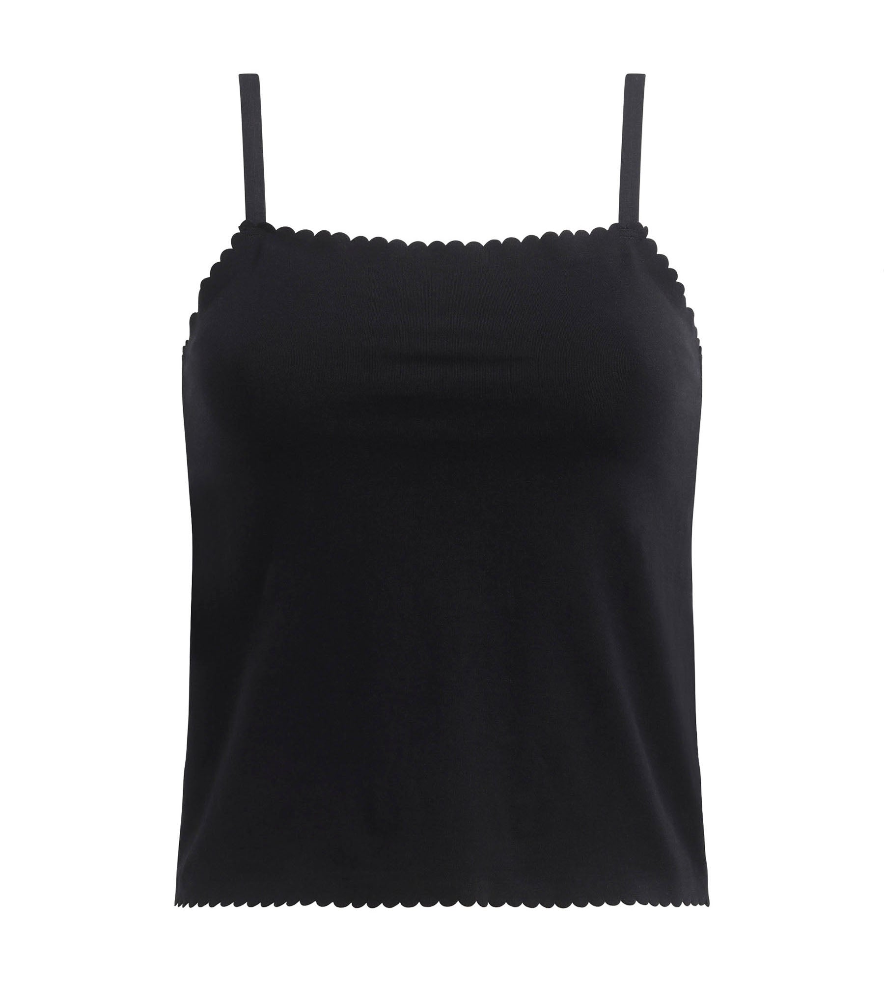 - Le design coquet de ce top à fines bretelles et bords festons
