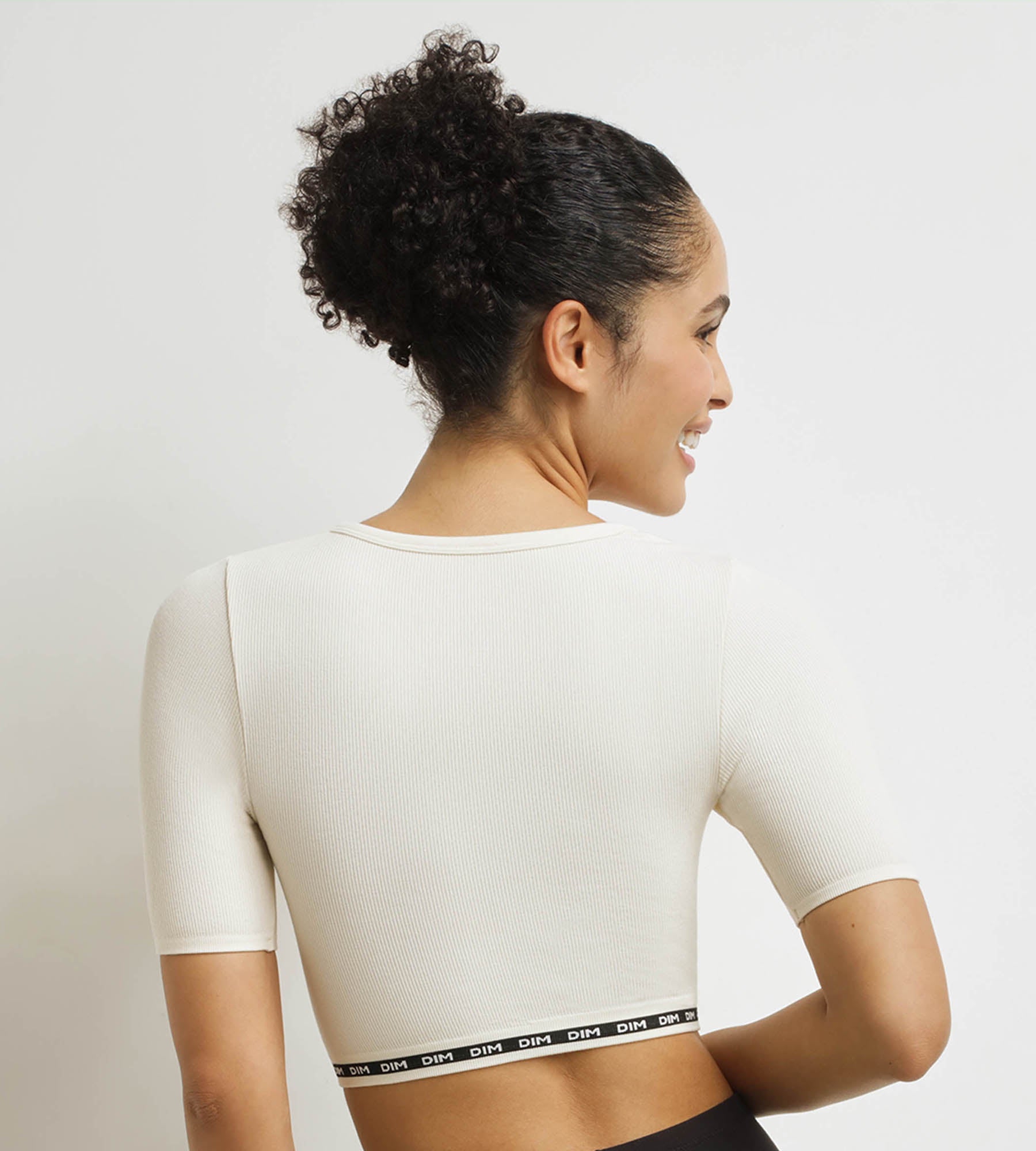 - La bande noire signée Dim qui finalise ce top avec caractère
